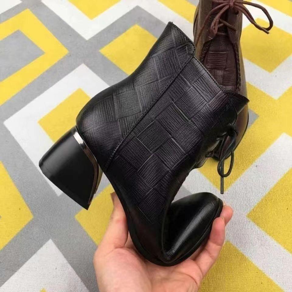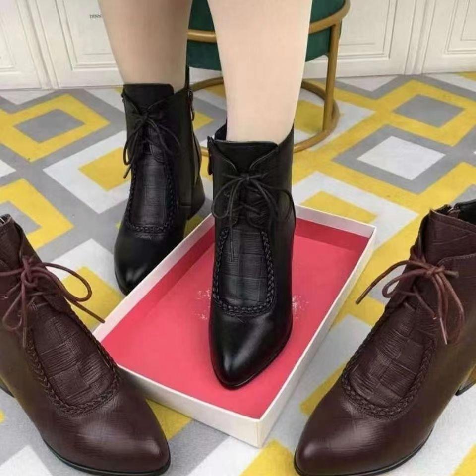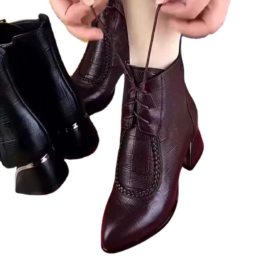 Модные короткие женские ботинки из натуральной мягкой кожи на среднем толстом каблуке с тиснением, заостренные ботинки, детская хлопковая обувь, женская зимняя бархатная мягкая подошва