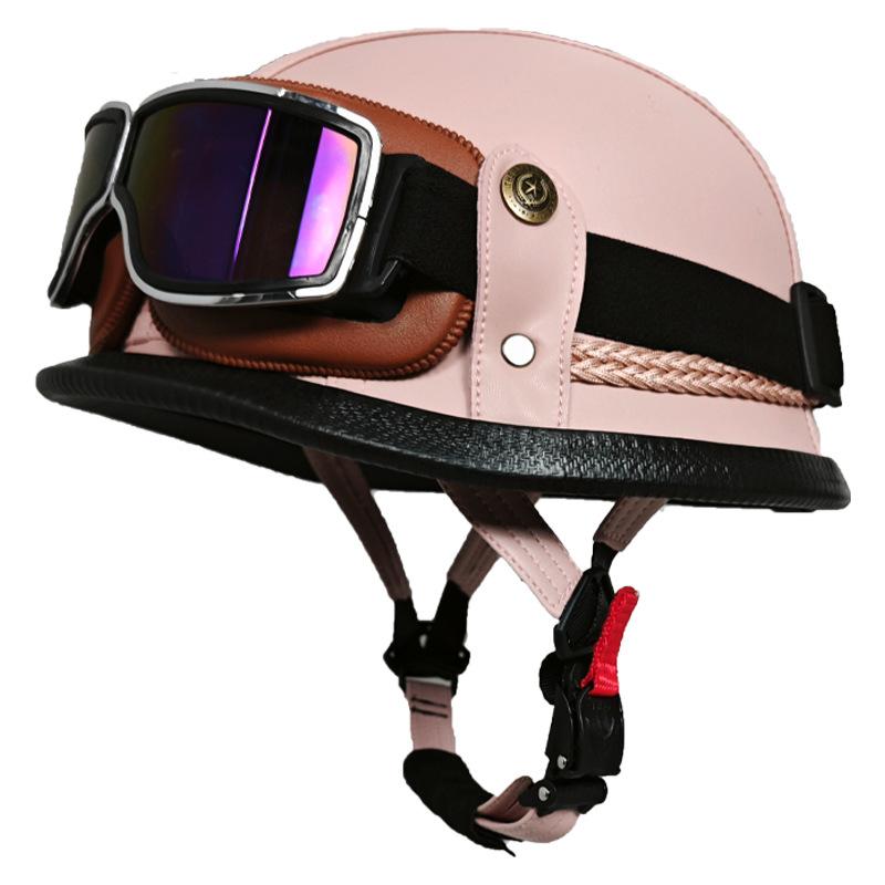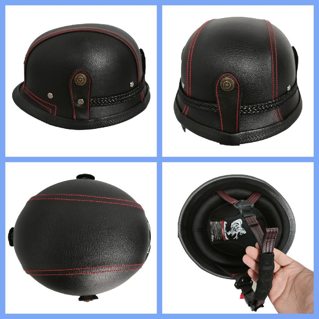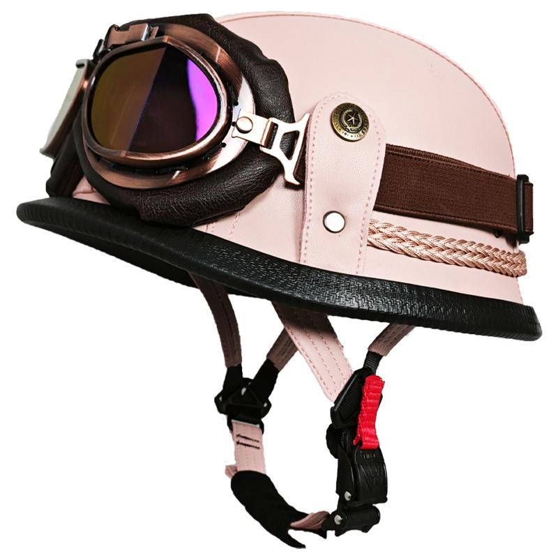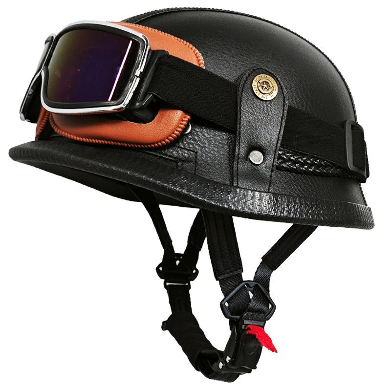 Немецкий кожаный шлем ручной работы для мужчин и женщин, четырехсезонный полушлем, шлем для электромобиля, ретро-шлем из стали