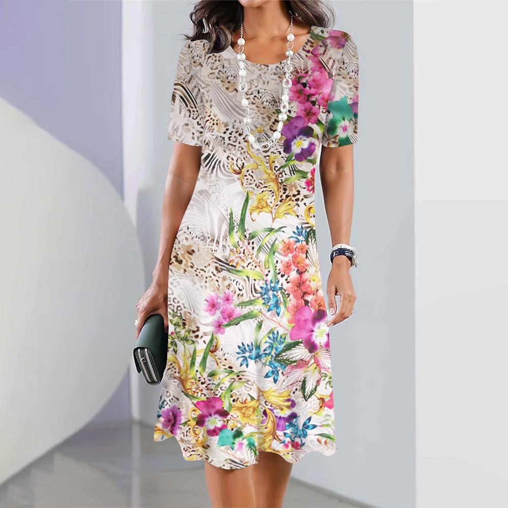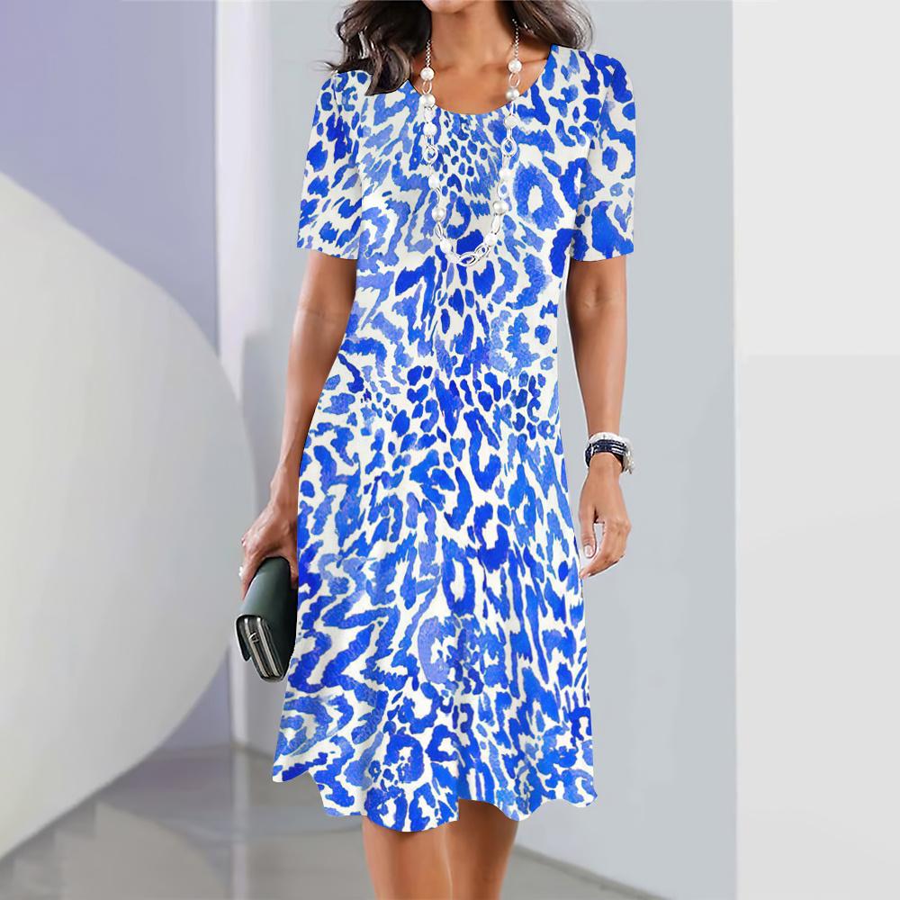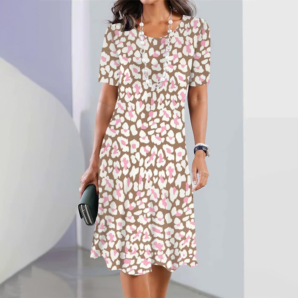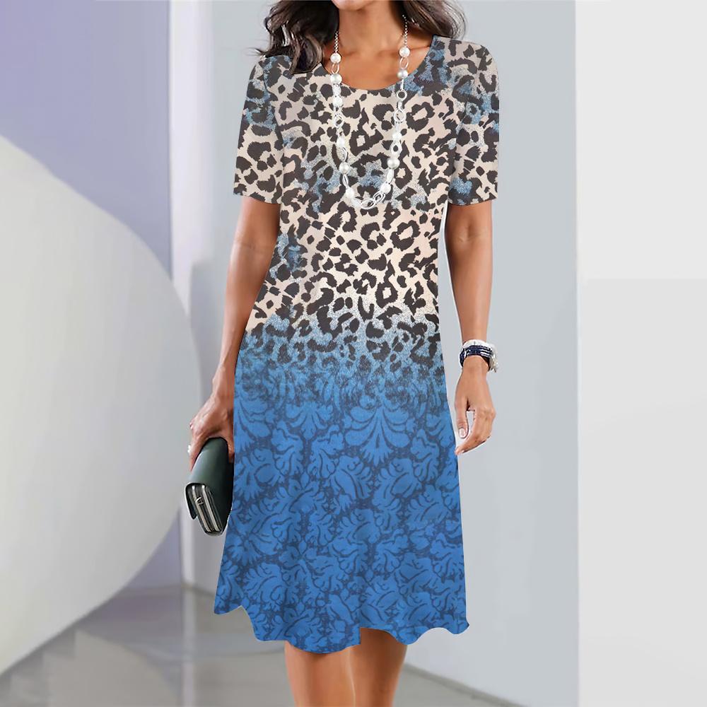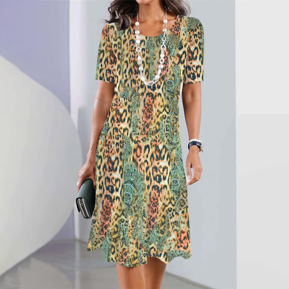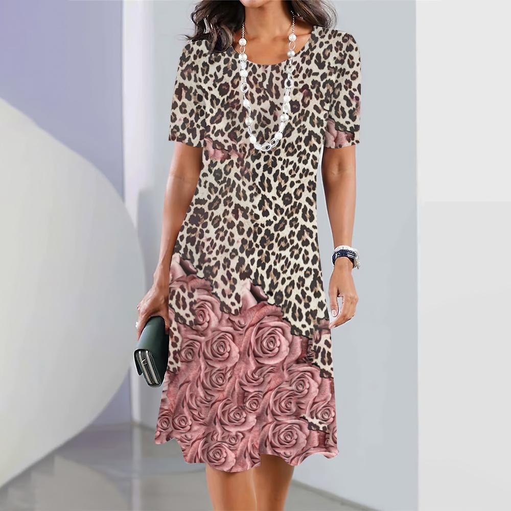 Новые женские платья Платье с леопардовым принтом Летнее элегантное платье Роскошные женские платья с коротким рукавом Модная одежда больших размеров