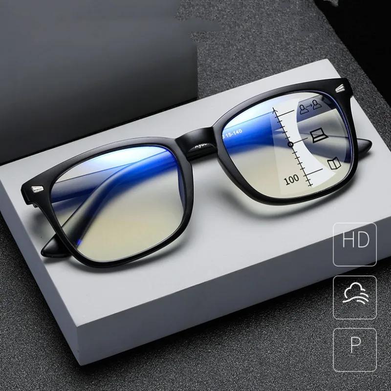 Прогрессивные мультифокальные антисиние очки для чтения с интеллектуальным увеличением для дальнего и ближнего зрения, очки с двойным светом для пресбиопии, оптические очки