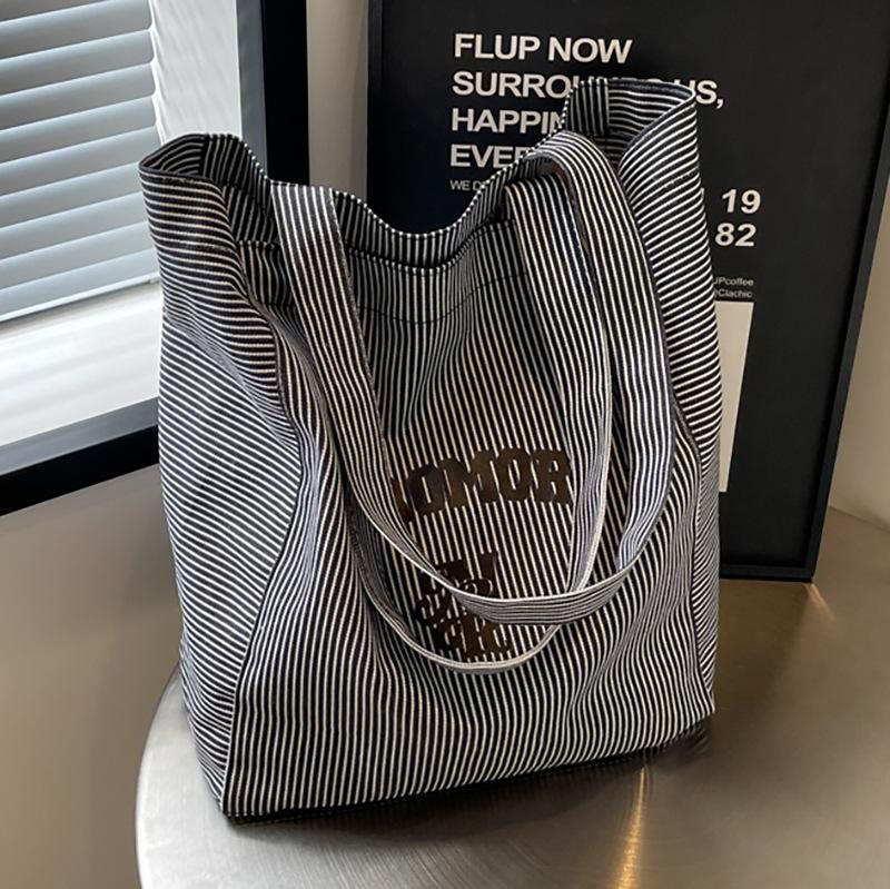 Повседневная полосатая холщовая сумка женская большая вместительная сумка через плечо для поездок на работу студенческая сумка для занятий сумка-тоут