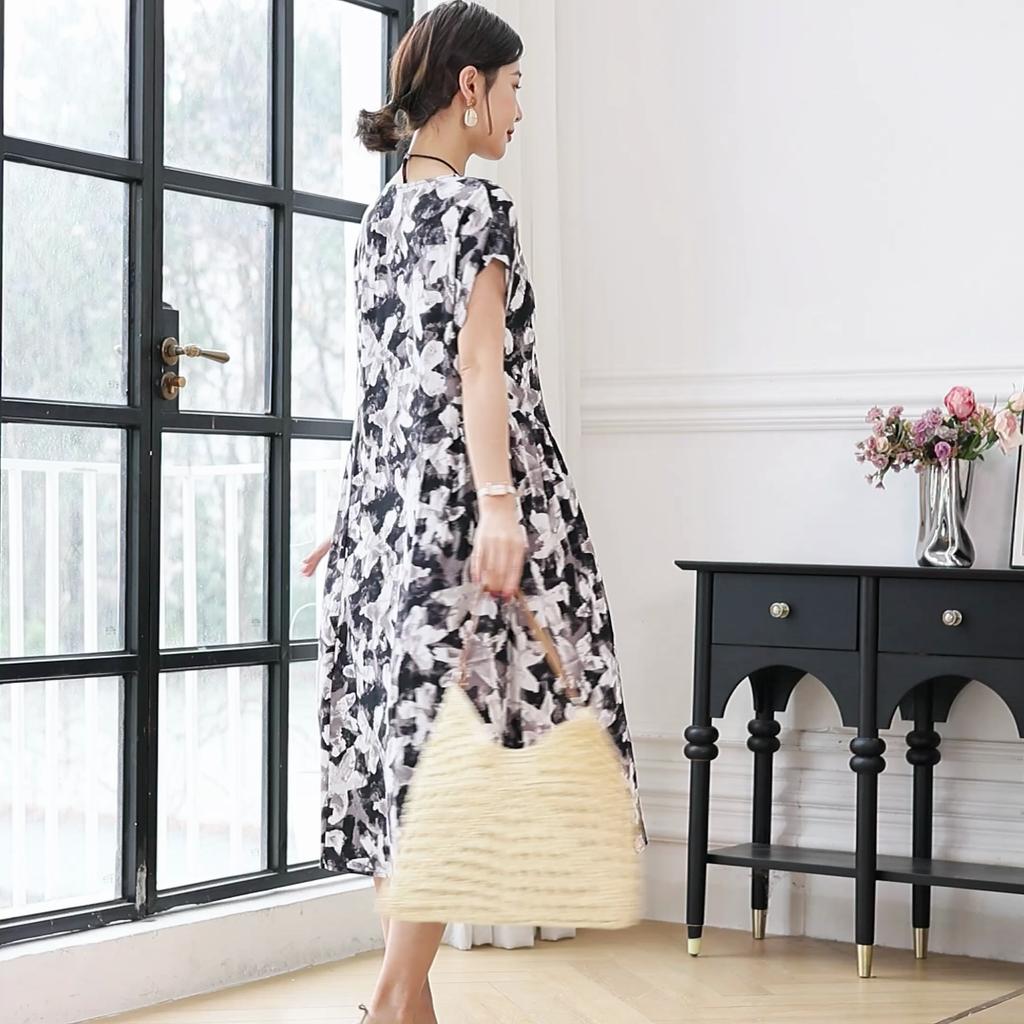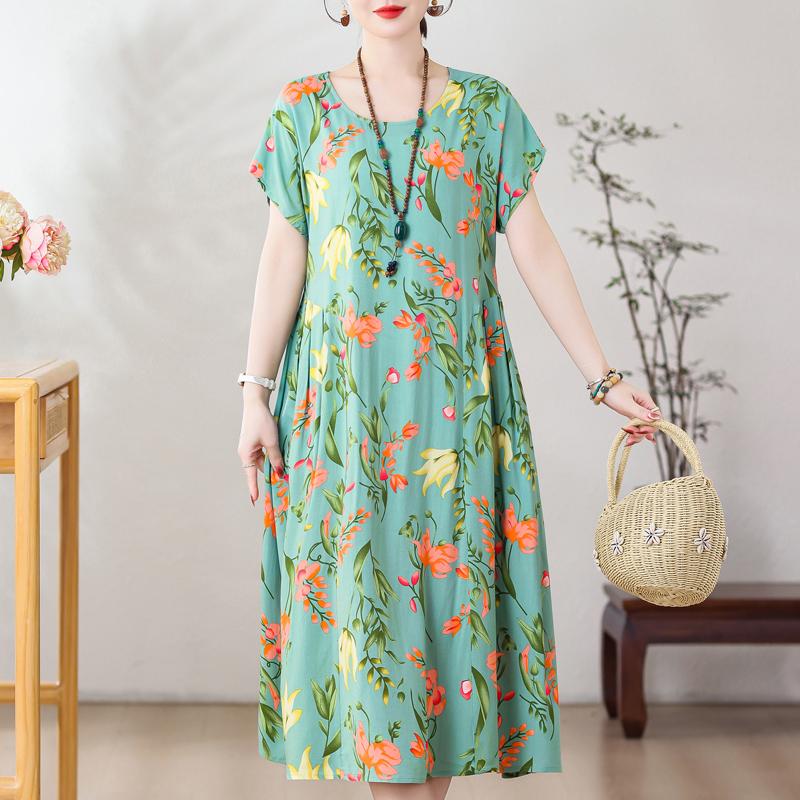 Плюс Размер Элегантные Женские Платья Летняя Винтажная Одежда Короткий Рукав Повседневный Длинный Платье