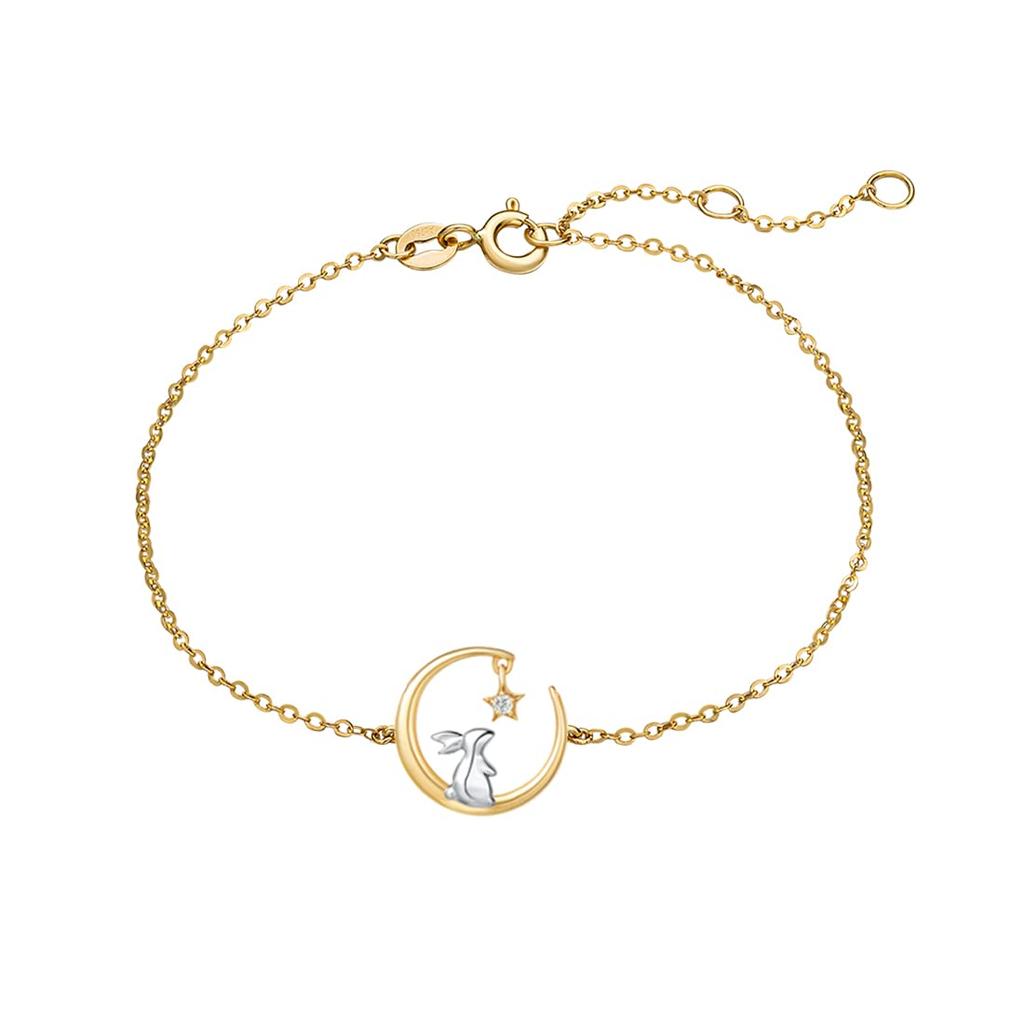 FANCIME K18 Gold Diamond Bracelet Crescent Moon Star Moon Viewing Rabbit 18K Gold Birthday Anniversary Day Christmas Present Gift Wrapped Women's