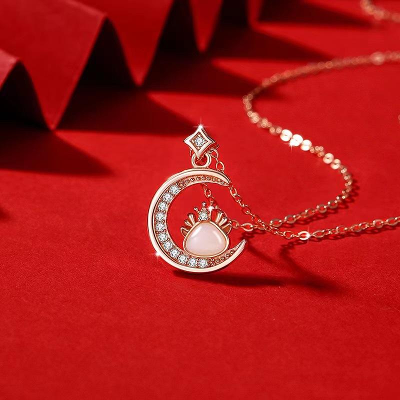 Ожерелье с имитацией нефрита Хотан для женщин, цепочка на ключицу с ветром, луной и благоприятным драконом в стиле Национального дворца приливов