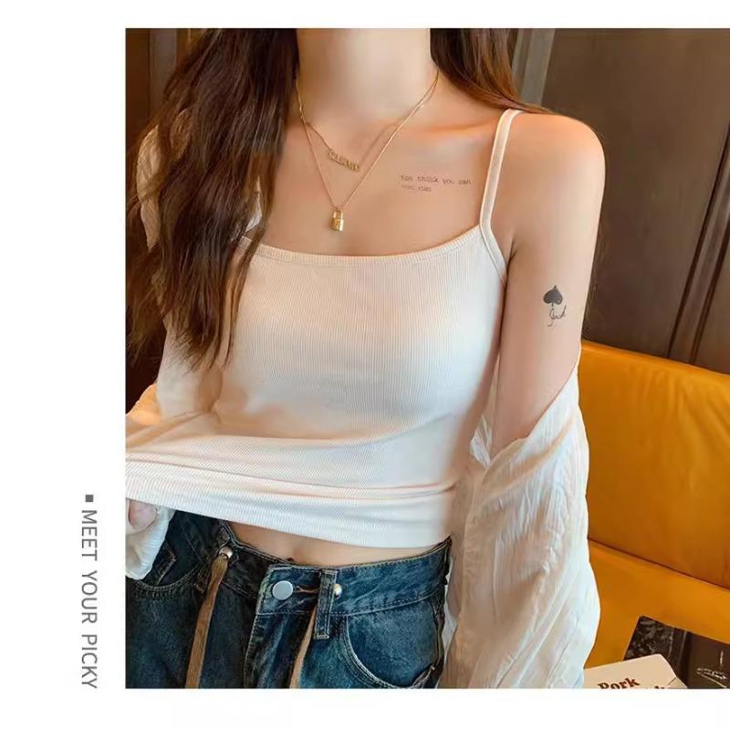 Весна и лето Чистый хлопок с нагрудной подкладкой Один маленький белый топ на бретельках для женщин с облегающей верхней одеждой Длинный жилет для женщин