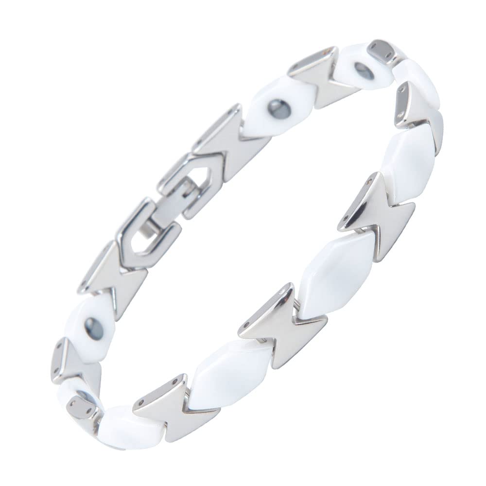 Германиевый браслет Керамический браслет из нержавеющей стали Антистатический браслет Магнитные украшения Белый женский + (19.0 см, Керамика)