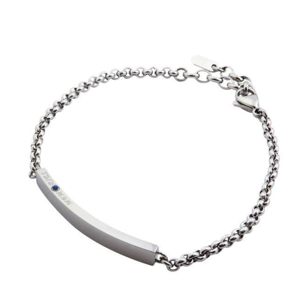 Браслет Amore из нержавеющей стали, простой аксессуар с циркониевым камнем, табличка с именем, подарок на день рождения [La Eterno] [мужской размер] [сентябрьский сапфир]