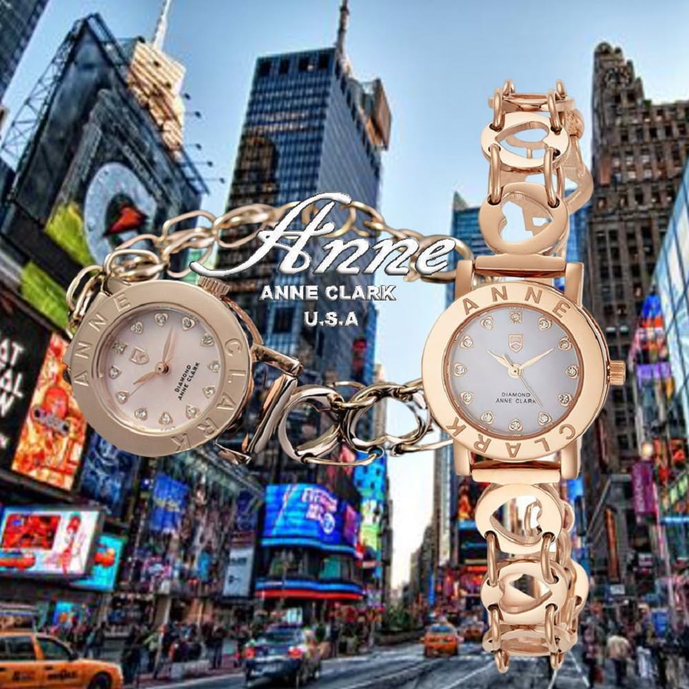 Часы ANNE CLARK с браслетом в форме сердца, натуральный розовый циферблат с бриллиантами и розовым золотом, женские