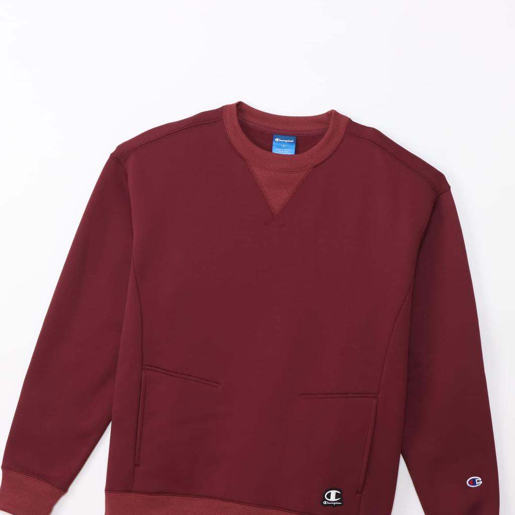 Свитшот Длинный рукав Круглый вырез Эластичный Термальный Логотип надпись TECH TERRY Свитшот с круглым вырезом Спортивный Бордовый [Champion] WEAVE(р) Мужские C3-YS005