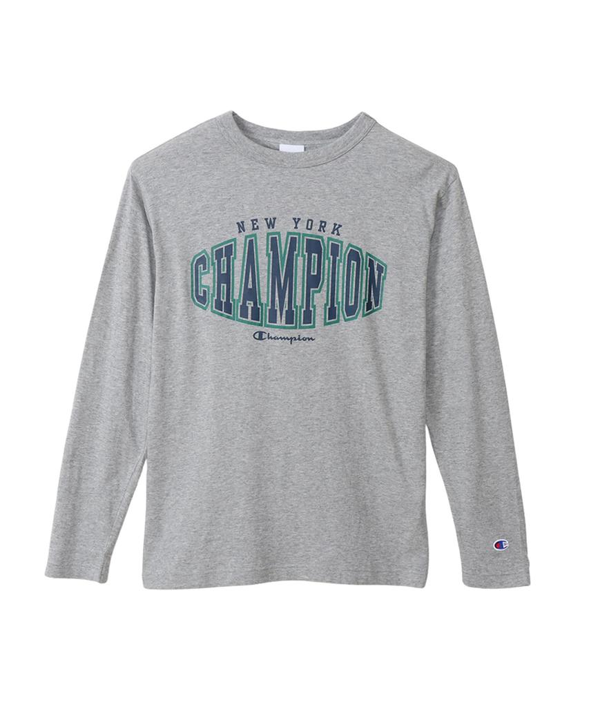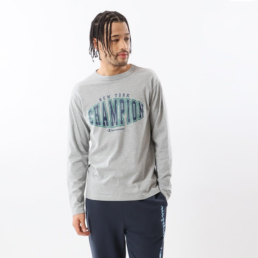 Длинная круглая хлопковая футболка с логотипом США с длинным рукавом, базовая футболка Oxford M [Champion], рукав, шея, 100% принт, футболка, C3-Y420, мужская, серая,