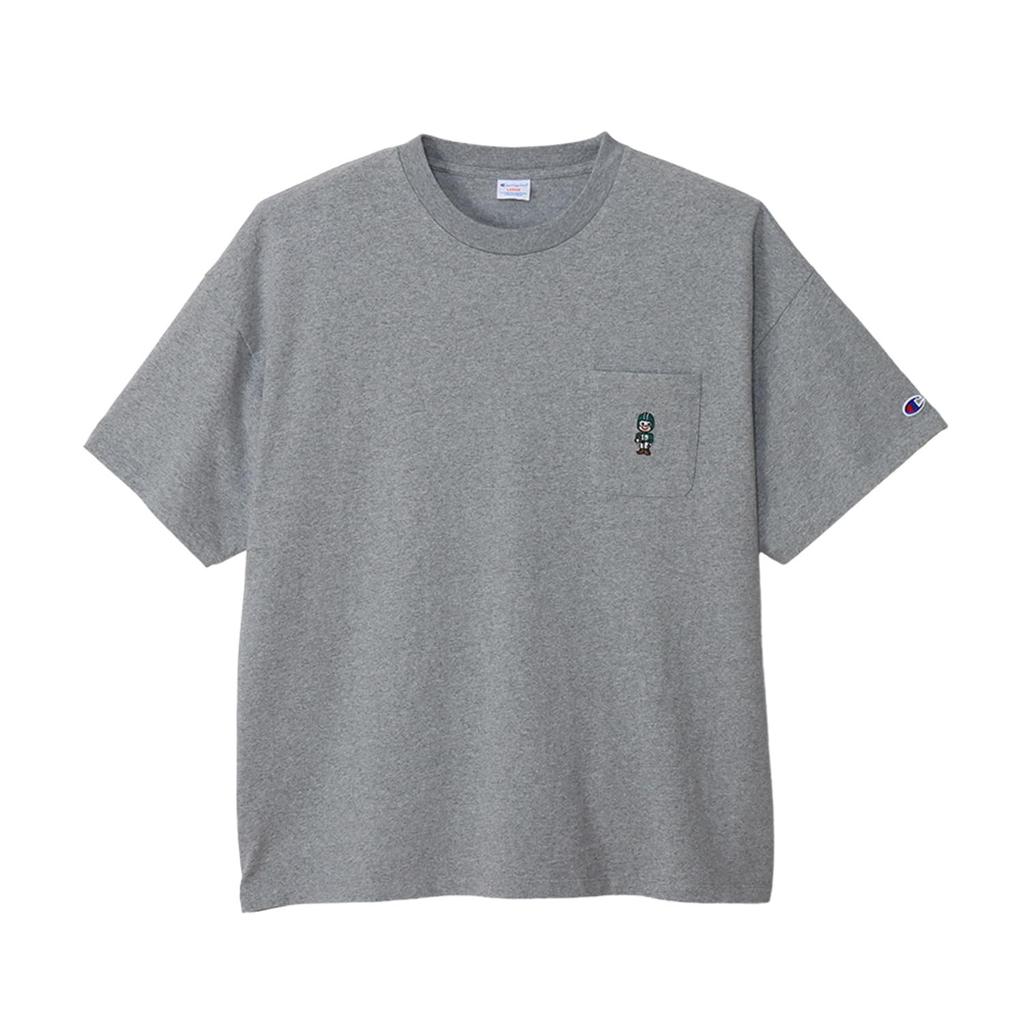 Короткая круглая графика с коротким рукавом и карманом Oxford Grey [Champion] Футболка, Рукав, Шея, 100% хлопок, Вышивка, Принт, Футболка, Мужская повседневная, C3-Z327,