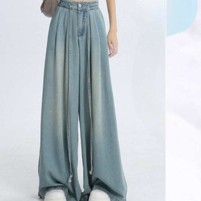 Тонкие брюки-плитки для женщин, летние тонкие расклешенные брюки, широкие свободные универсальные джинсы для женщин, летние тонкие