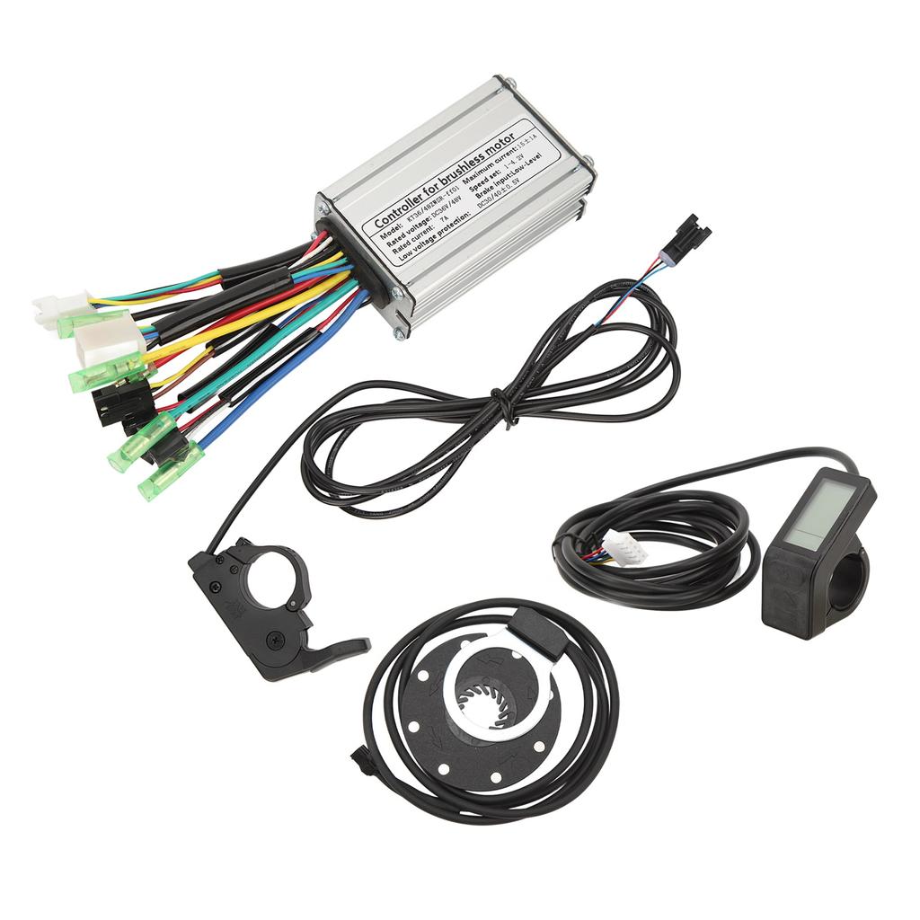 1 x Контроллер1 x Панель1 x Курок газа1 x Магнитная точка бустера2 x Руководство пользователяМатериал корпуса контроллера: Корпус контроллера комплекта для переоборудования электрического велосипеда изготовлен из высококачественного металла с канавкой, отличной функцией рассеивания тепла для защиты внутренней цепи и предотвращения тепловой перегрузки.