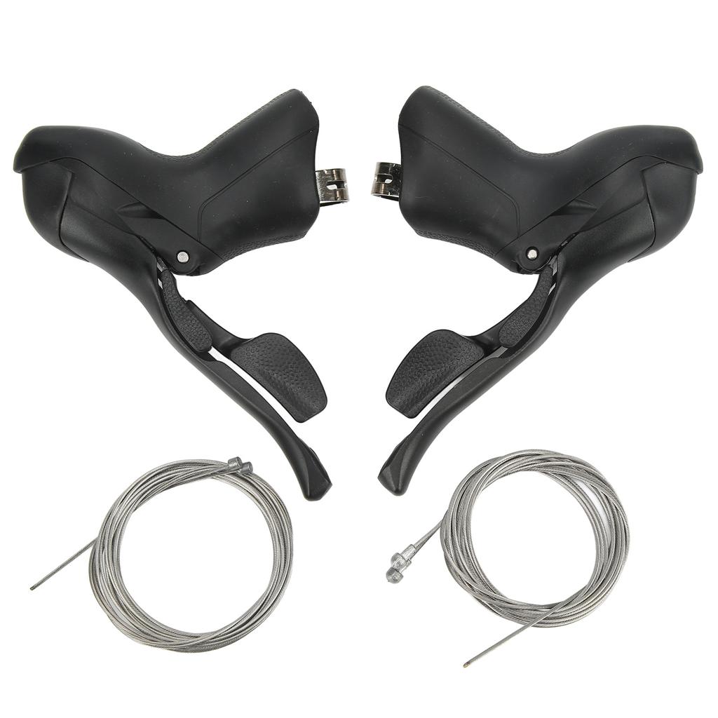 2 x рычаг переключения передач для велосипеда, 2 x троса переключения передач, 2 x тормозного троса, материал премиум-класса: Изготовленные из алюминиевого сплава премиум-класса для тормозных рычагов и ПВХ для сцепления, тормозные рычаги переключения передач являются износостойкими, коррозионностойкими и имеют длительный срок службы.