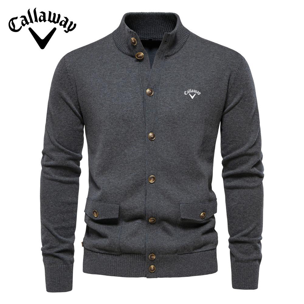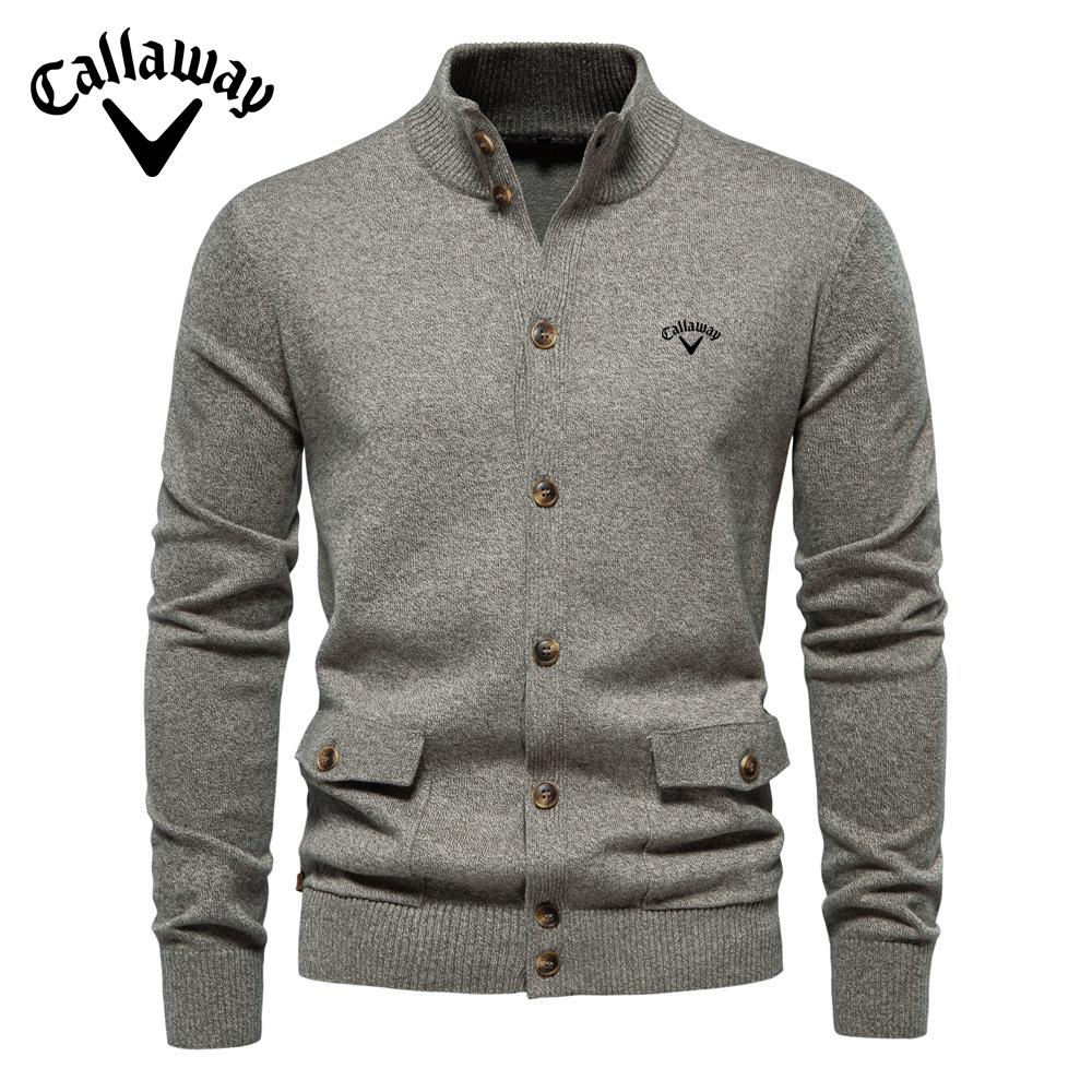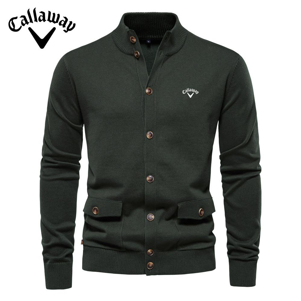 Callaway 2025 Осень и зима вышитый новый мужской топ-кардиган, высококачественный деловой повседневный однотонный свитер для мужчин