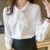 Осенняя женская новая шифоновая рубашка с длинным рукавом, темпераментный дизайн, галстук-бабочка, синий топ — купить товар онлайн с бесплатной доставкой по всему миру!