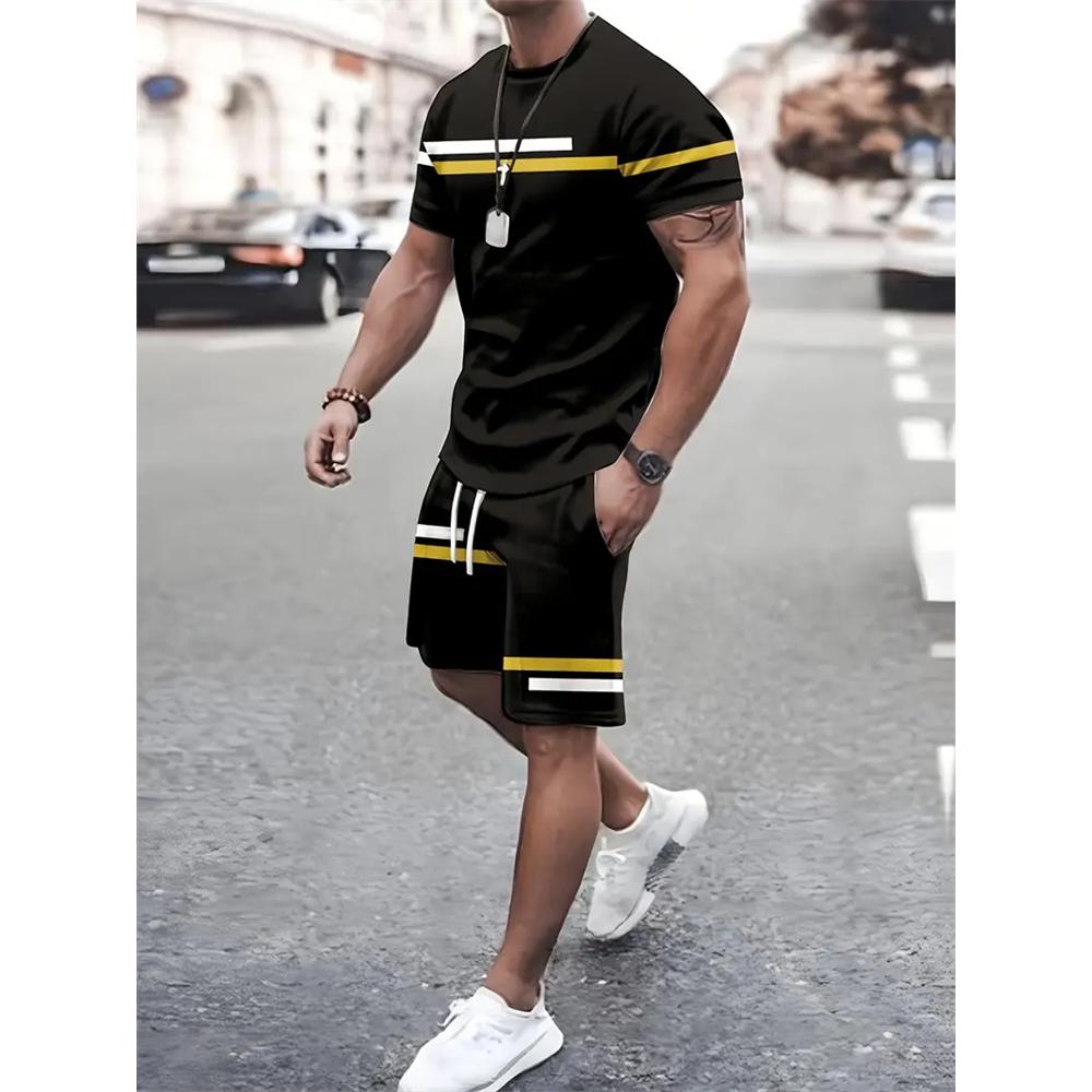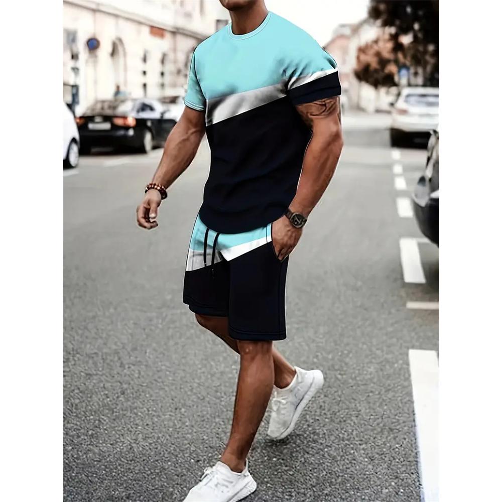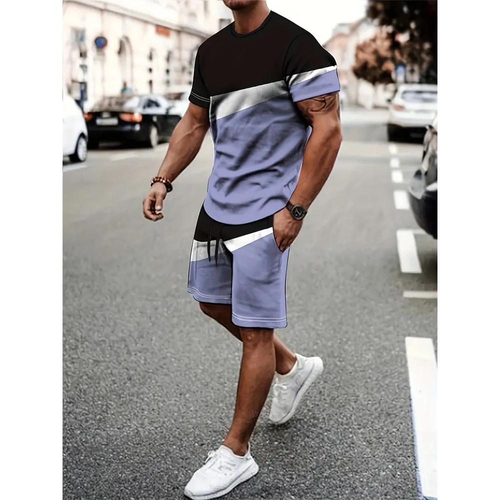 Новая летняя мужская спортивная одежда, футболка с короткими рукавами, костюм из двух частей, одежда для путешествий на открытом воздухе, шорты большого размера, тренировочная одежда