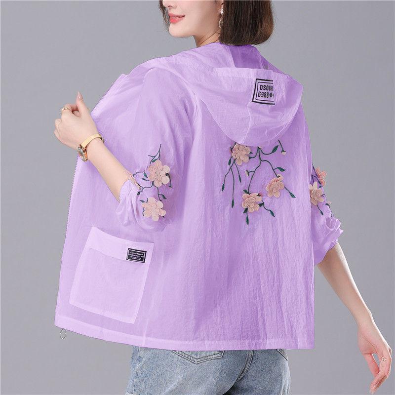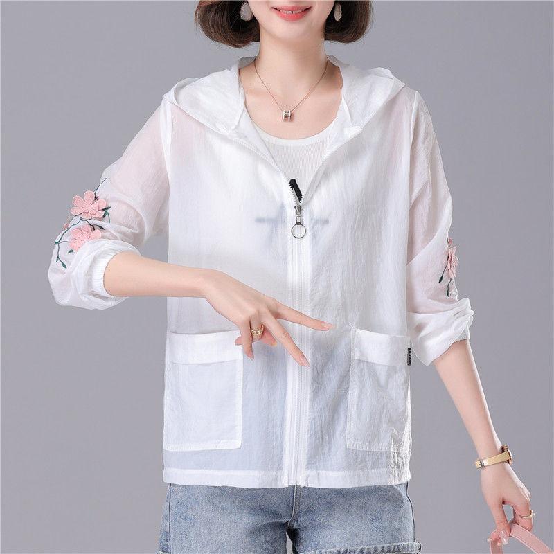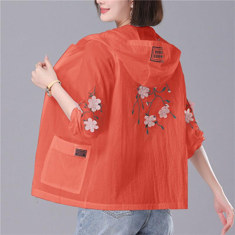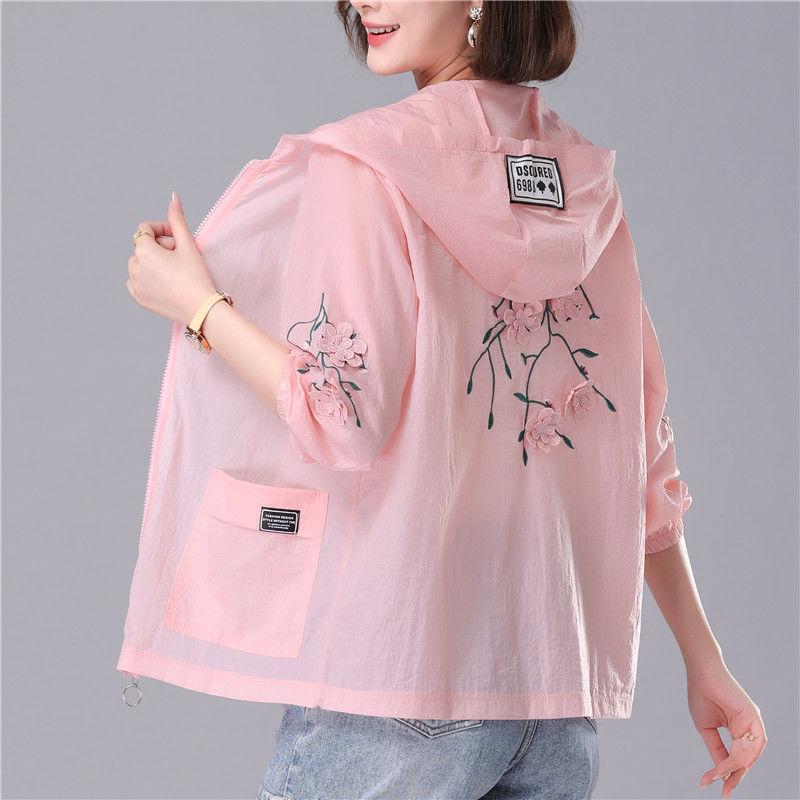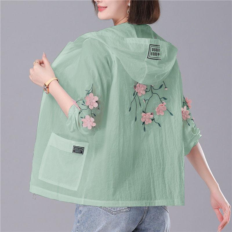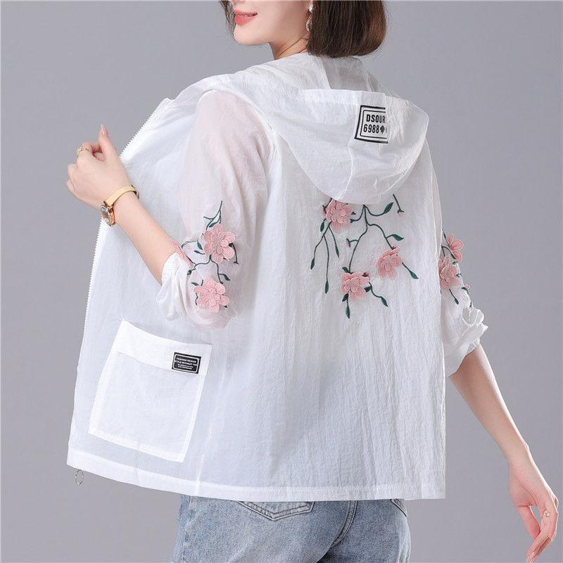 Вышитая одежда больших размеров с защитой от солнца для женщин, универсальная свободная одежда с принтом, устойчивая к ультрафиолетовому излучению, летняя одежда с длинными рукавами, дышащая, тонкая одежда для женщин