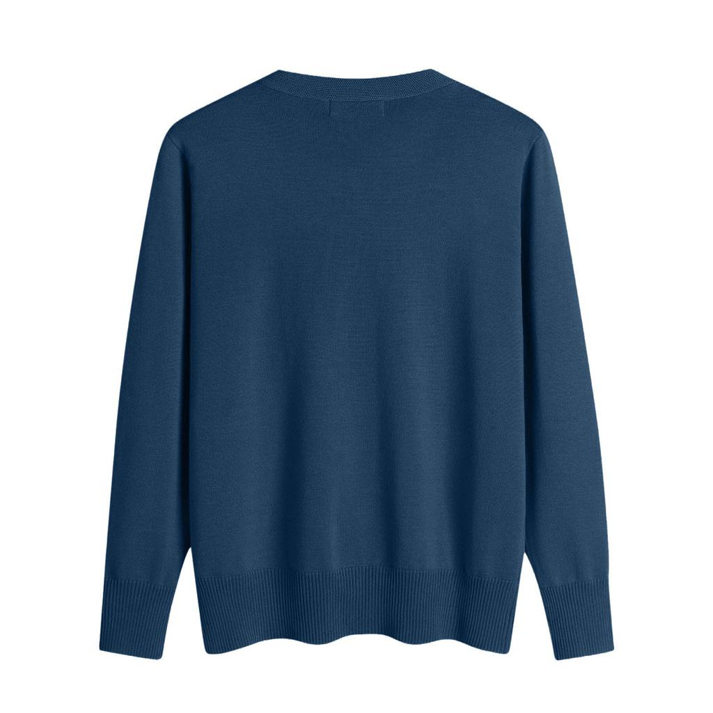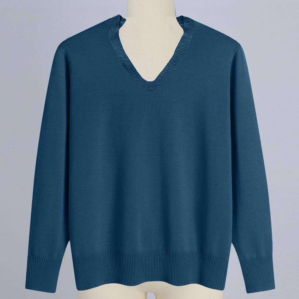 Женская мода свободный V-образный вырез длинный рукав нижняя часть рубашки верх вязаный свитер