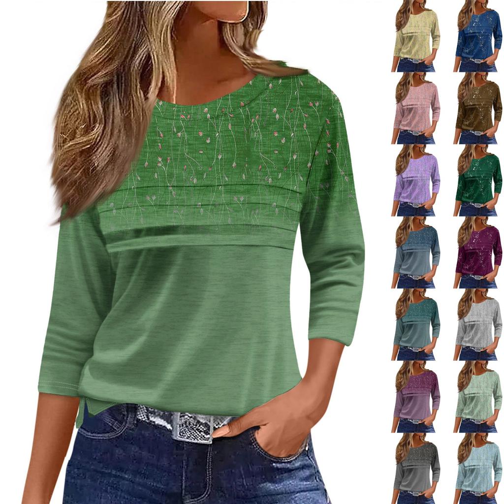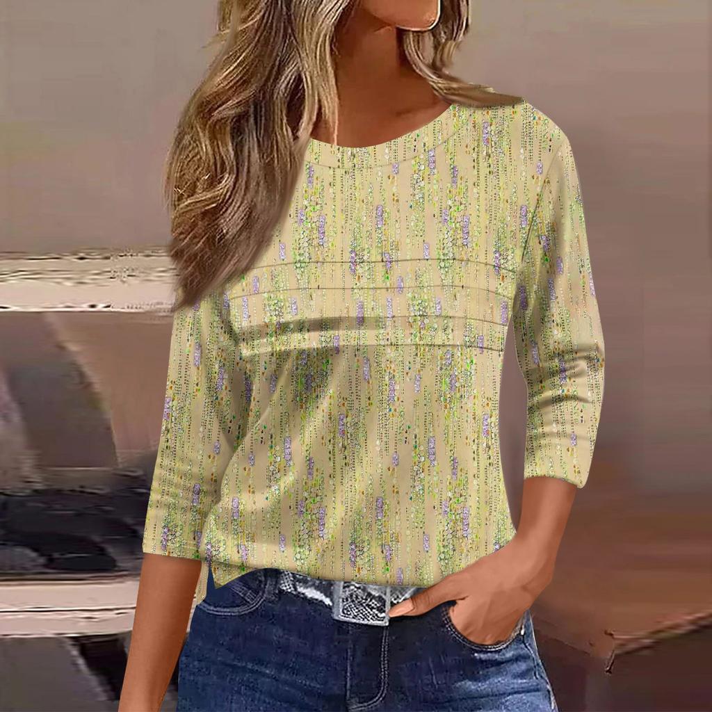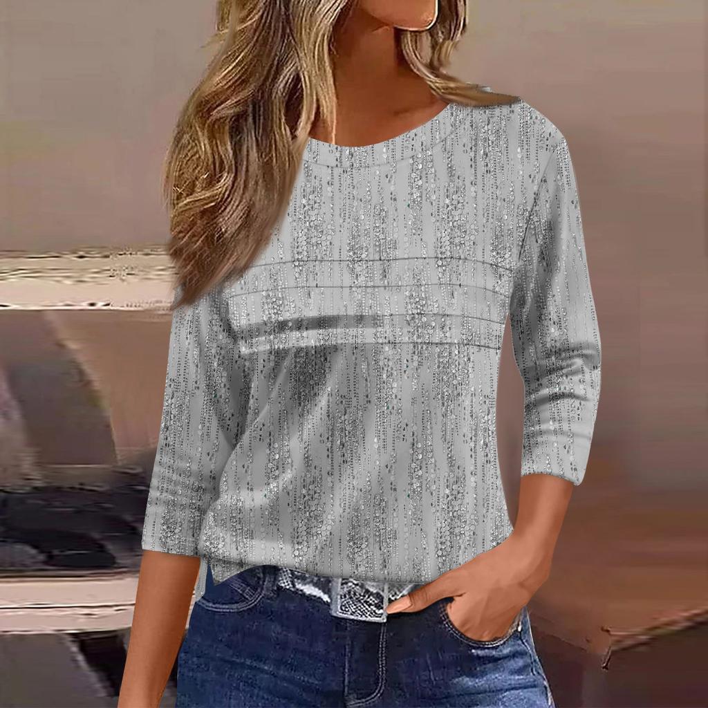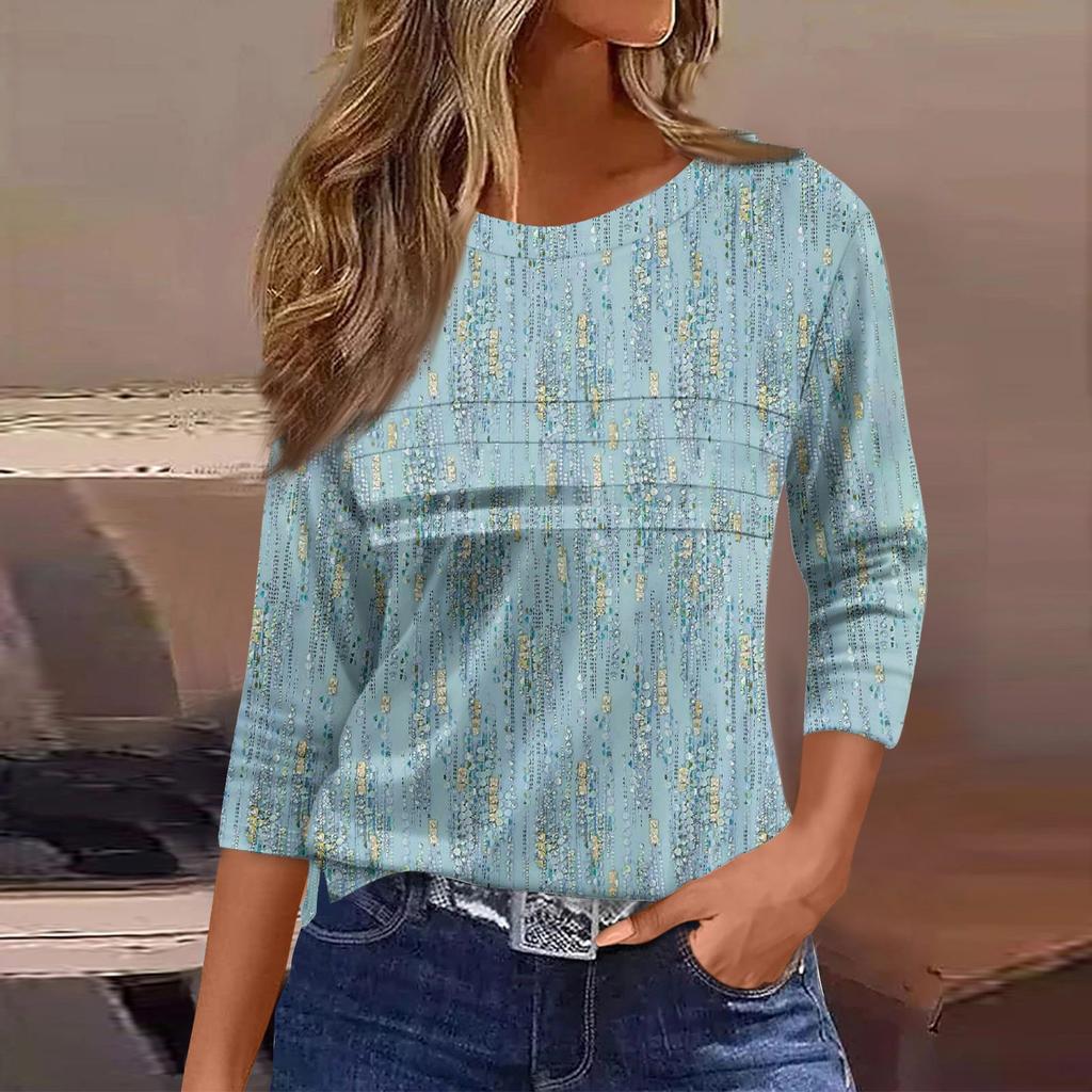 Женская мода повседневный свободный топ с рукавом 3/4 в полоску с круглым вырезом