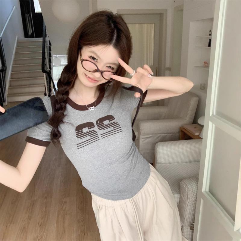 Женская персонализированная футболка с короткими рукавами и принтом в виде американских букв, летний короткий облегающий топ для студентов