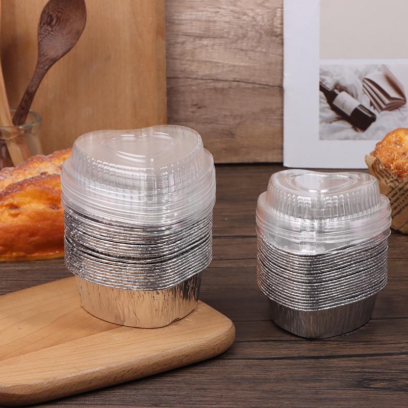10 шт. формочек для выпечки из алюминиевой фольги в форме сердца с крышкой для кексов, тартов, пудингов, кексов, кондитерских изделий, противень для выпечки