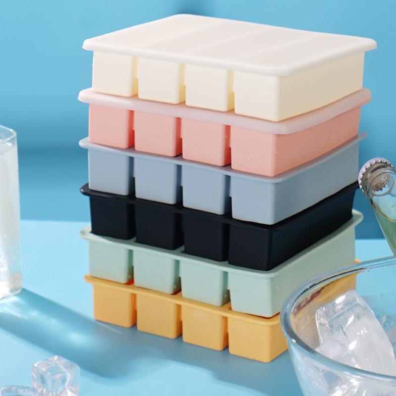 Гигантское хранилище для еды, соуса, с крышкой, силиконовые поддоны для заморозки, очень большой суповой лед, 4 кубика, формы для заморозки продуктов