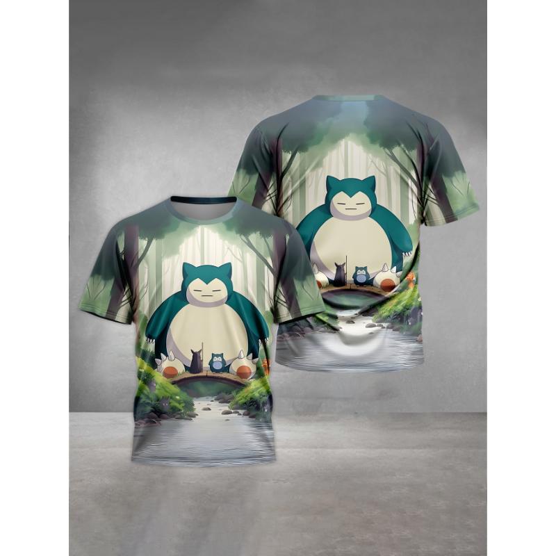 Мультяшный принт Snorlax Детская одежда от 5 до 14 лет Мужская верхняя одежда для детей Мальчик Девочки Детская футболка Верхние рубашки
