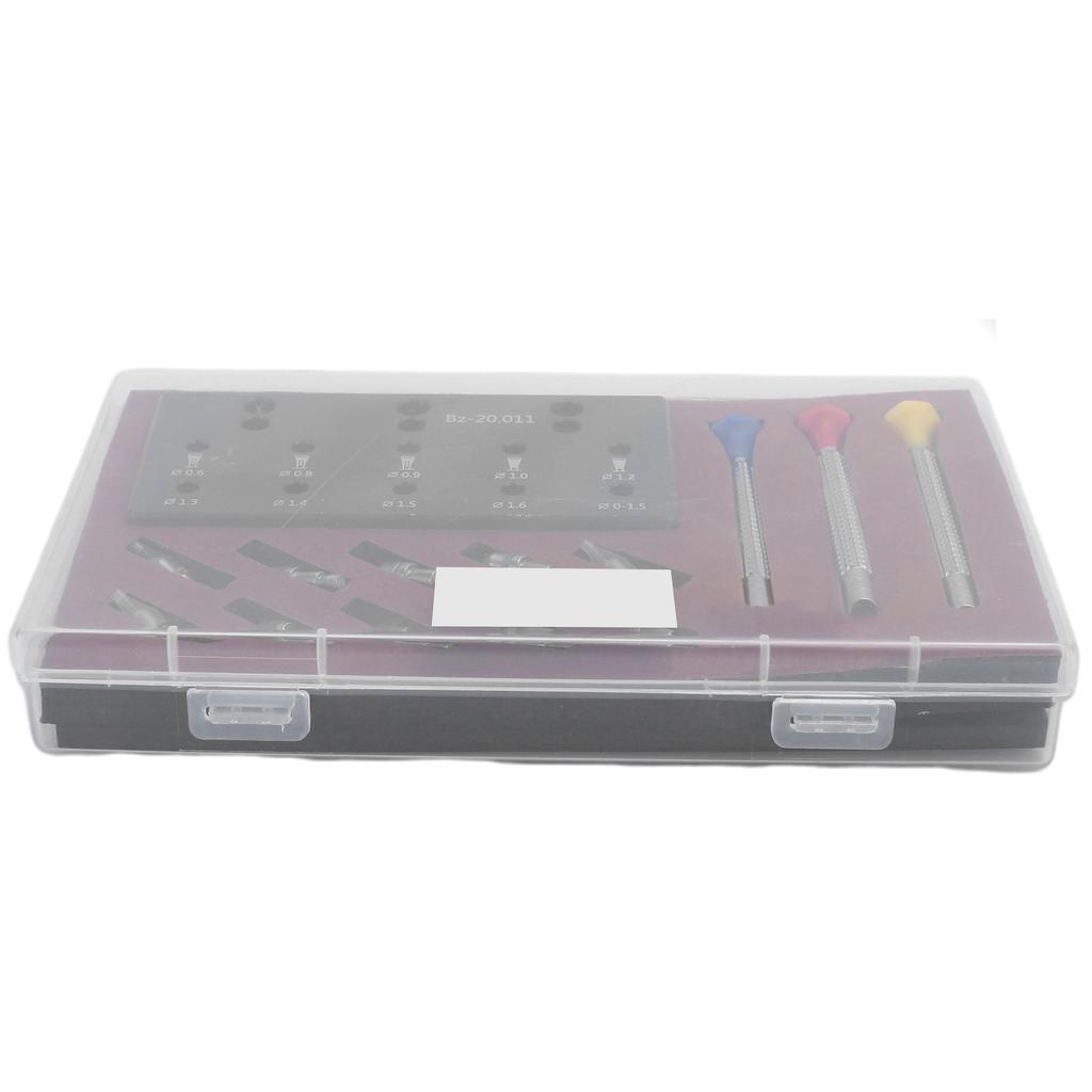 1 х основание 3 х ручка 1 х наконечник 0,6 мм1 х наконечник 0,8 мм 1 х наконечник 0,9 мм1 х наконечник 1,0 мм1 х наконечник 1,2 мм1 х наконечник 1,3 мм1 х наконечник 1,4 мм1 х наконечник 1,5 мм1 х наконечник 1,6 мм1 х наконечник 0-1,5 мм