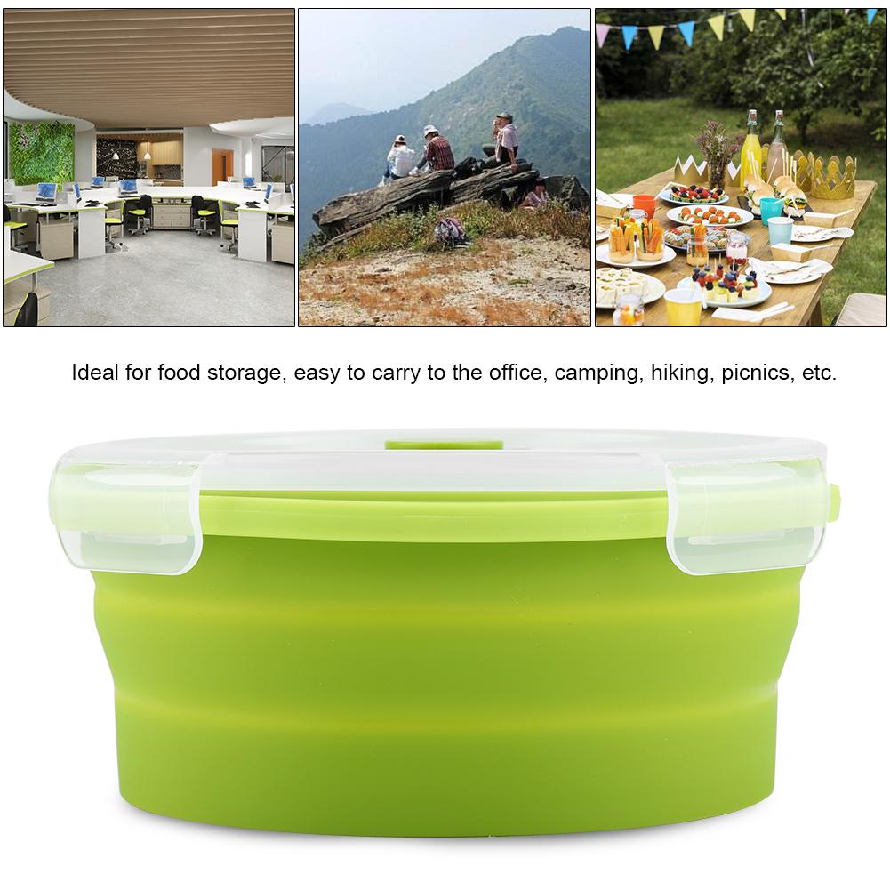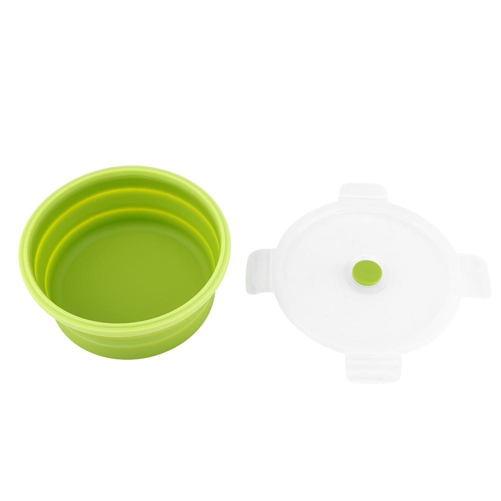 800 мл круглый силиконовый контейнер для бенто складной ланч-бокс контейнер для еды в микроволновой печи (Светло-зеленый)