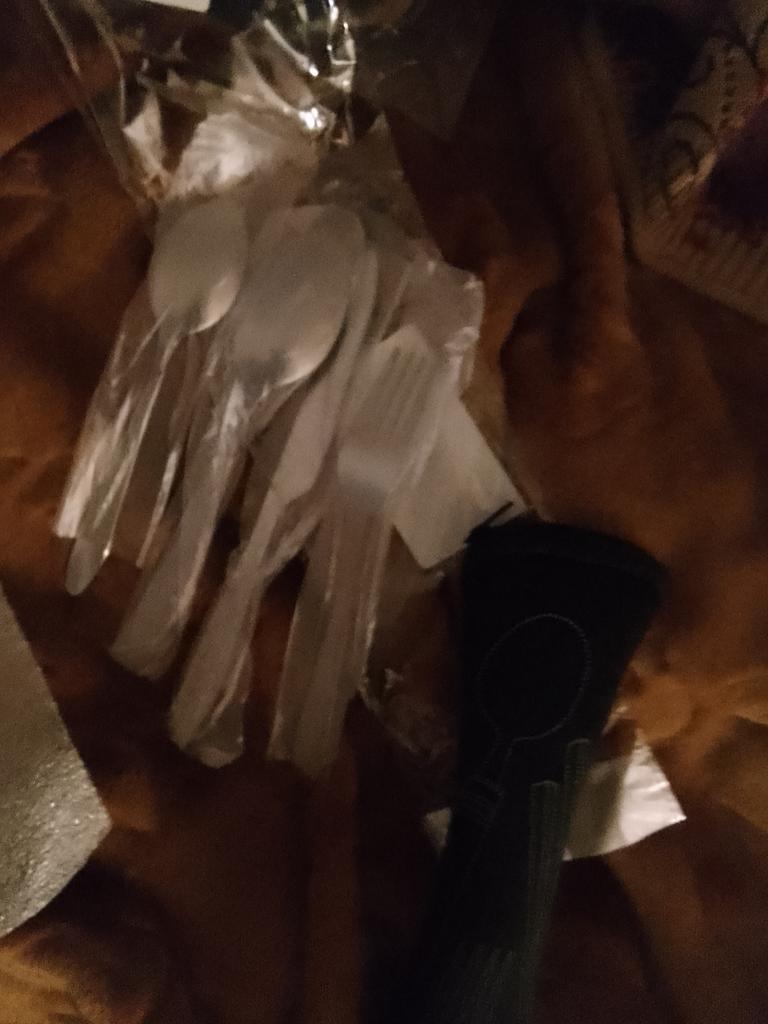 Столовый набор. С этим не поспорить. Поэтому две звезды, а не одна. Детский. Для игр. Абсолютно плоские ложки, без черпала. Очень тонкий металл (если металл, я не поняла из чего они сделаны). Детский нож, детская вилка. Хотела положить с собой в больницу. Теперь только выбросить. Фото с ручкой для сравнения