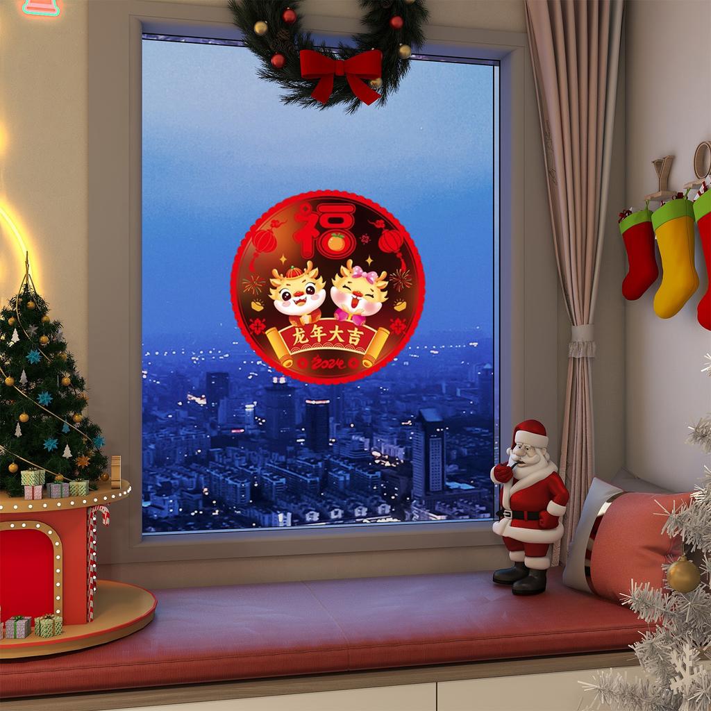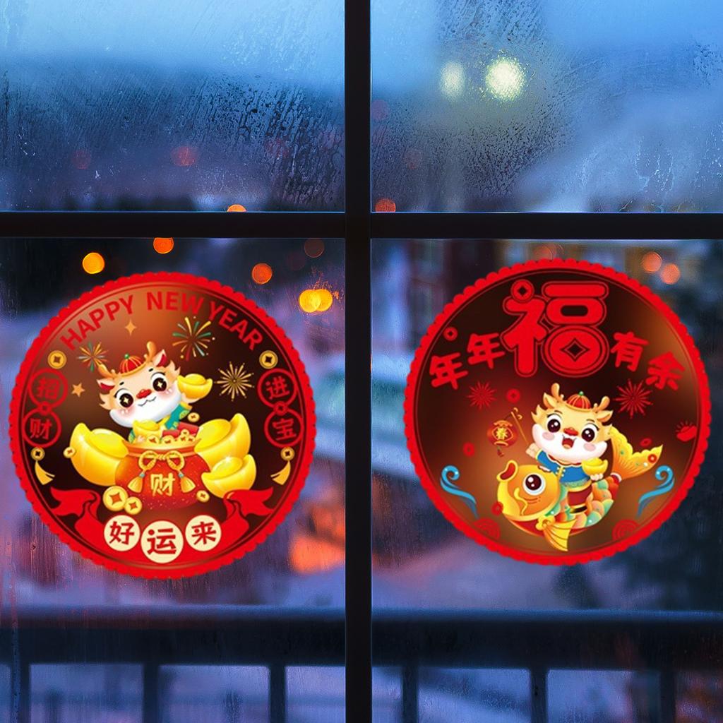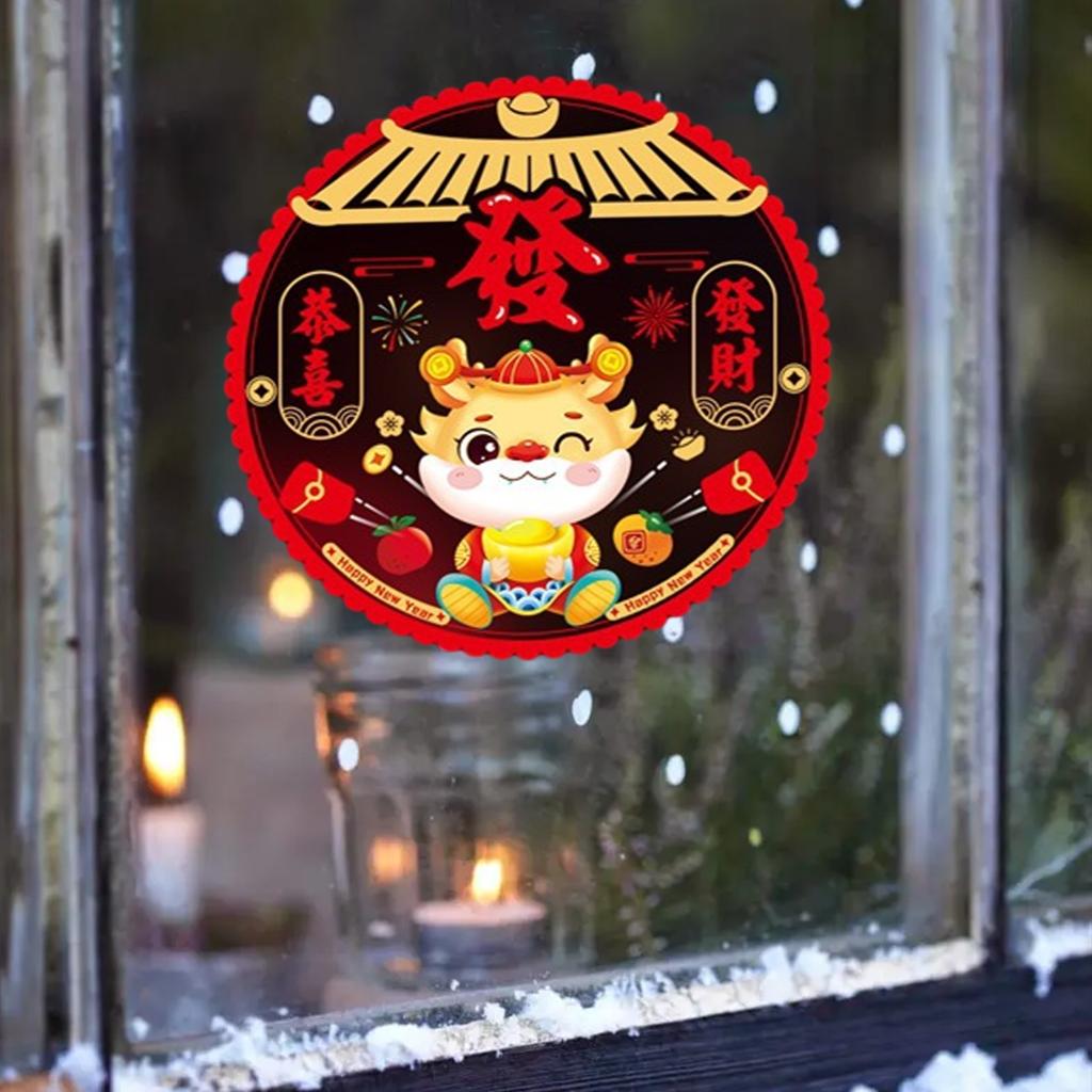 Двухсторонние красочные украшения для окон в честь года дракона, китайский Новый год, весенний фестиваль, зодиакальный статичный знак