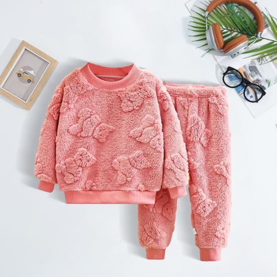 Повысьте комфорт вашего малыша с этим уютным и стильным комплектом детской домашней одежды.. Изготовленный из высококачественного полиэфирного волокна и фланелевой ткани, этот комплект создан для того, чтобы согреть и укутать вашего ребенка.. В комплект входит топ с круглым вырезом, длинными рукавами и брюки, подходящие как для мальчиков, так и для девочек.. Эта домашняя одежда с очаровательным рисунком в виде медведя и классическим круглым вырезом горловины излучает простоту с ноткой игривости..