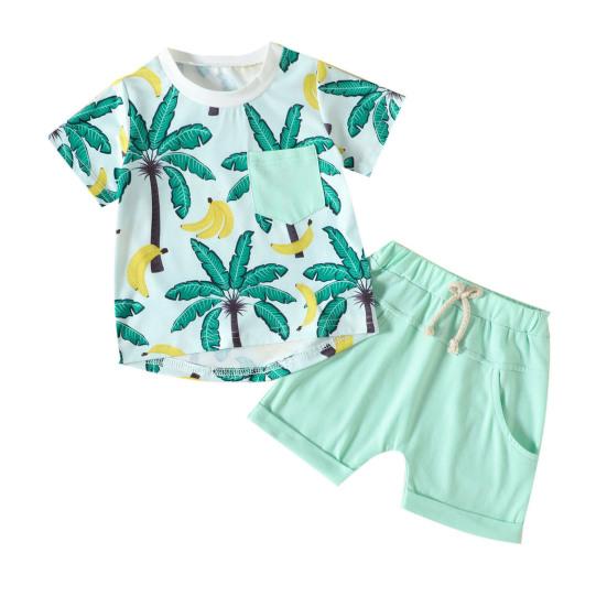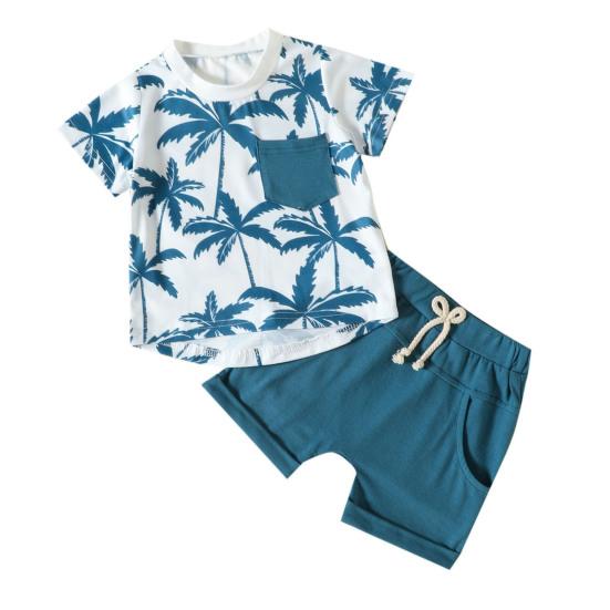 Представляем наш детский костюм, который идеально подойдет для различных случаев, таких как подарки на день рождения, вечеринки и семейные праздники.. Этот комплект одежды для мальчиков-малышей украшен очаровательным принтом в виде деревьев на верхней части, имеет круглую горловину, короткие рукава и передний карман..