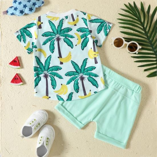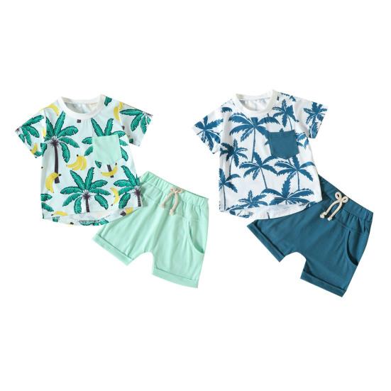 Восхитительный дизайн: Этот костюм из двух частей для мальчиков-малышей украшен очаровательным принтом в виде дерева на верхней части, имеет круглую горловину, короткие рукава и передний карман.. В сочетании с однотонными шортами на эластичной талии этот наряд выглядит одновременно уникальным и модным.