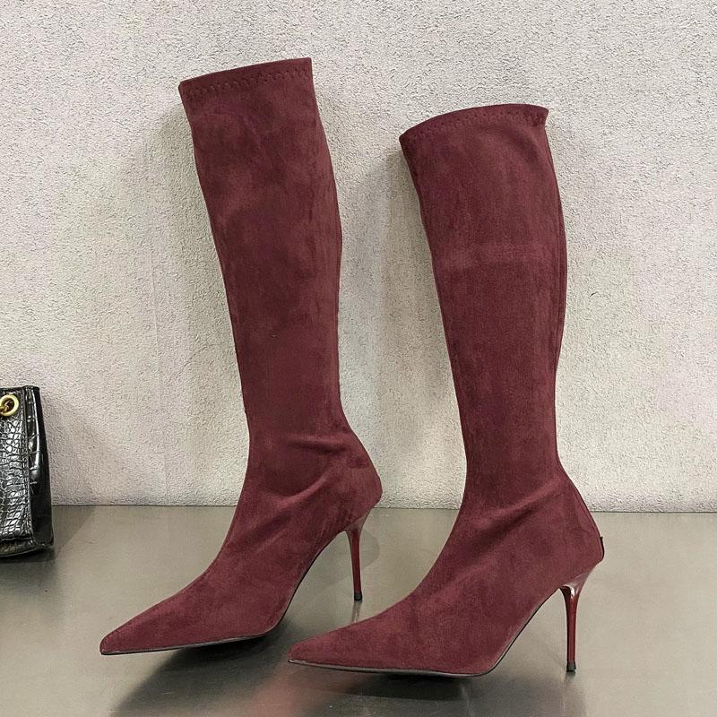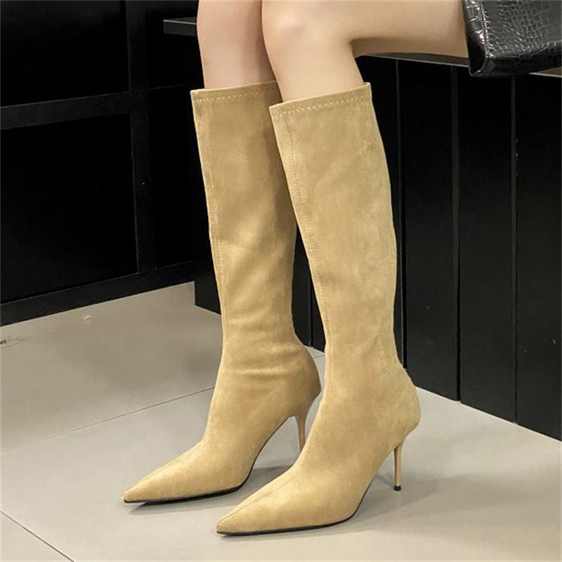 Aneikeh Уличный стиль осень-зима остроносые женские сапоги до колена модные молнии тонкие высокие каблуки туфли для банкета выпускного вечера