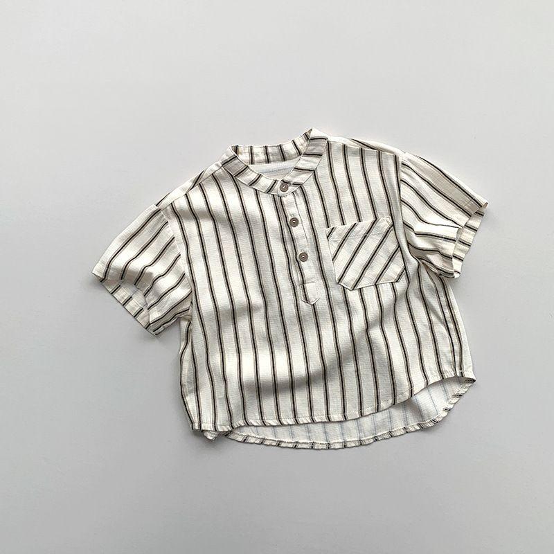 Рубашка для мальчиков, летняя, для мальчиков и девочек, корейская версия, сильная полосатая, с коротким рукавом, детский универсальный топ, модный