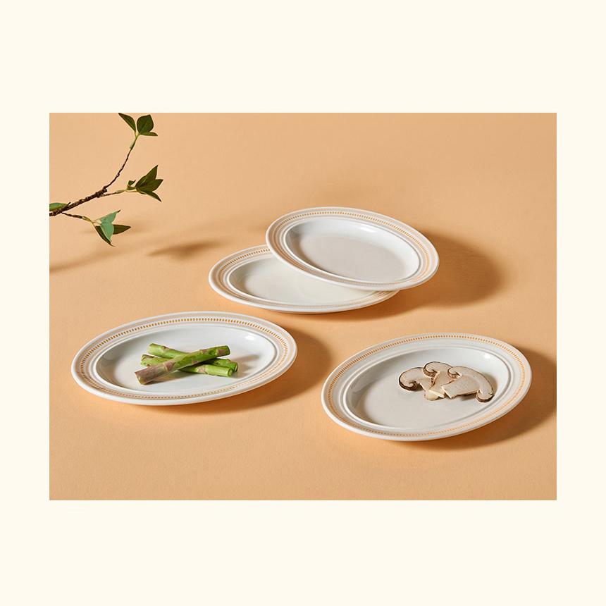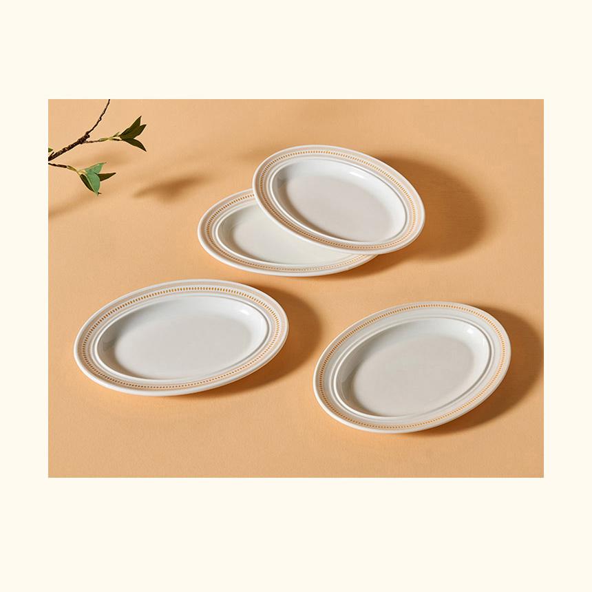 Керамическая овальная тарелка CORELLE Rosemont, 4 предмета, столовая посуда, цвет слоновой кости и оранжевый