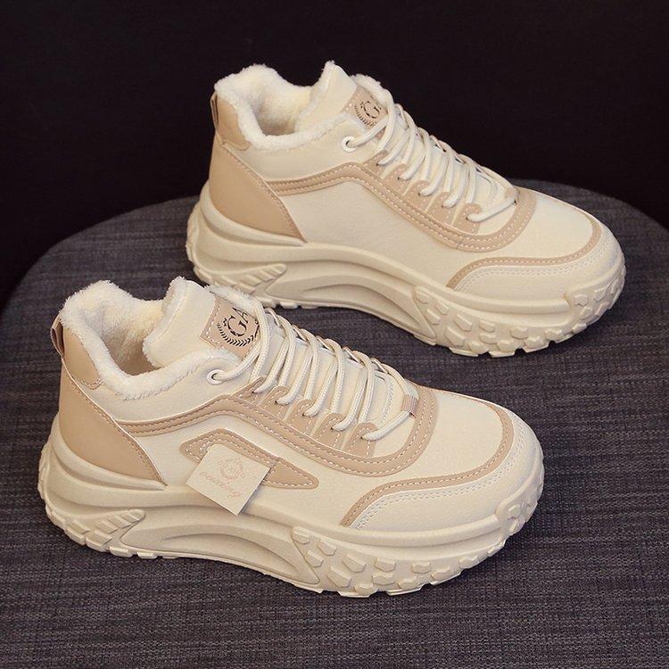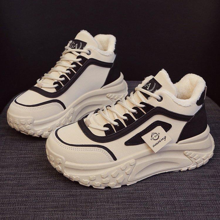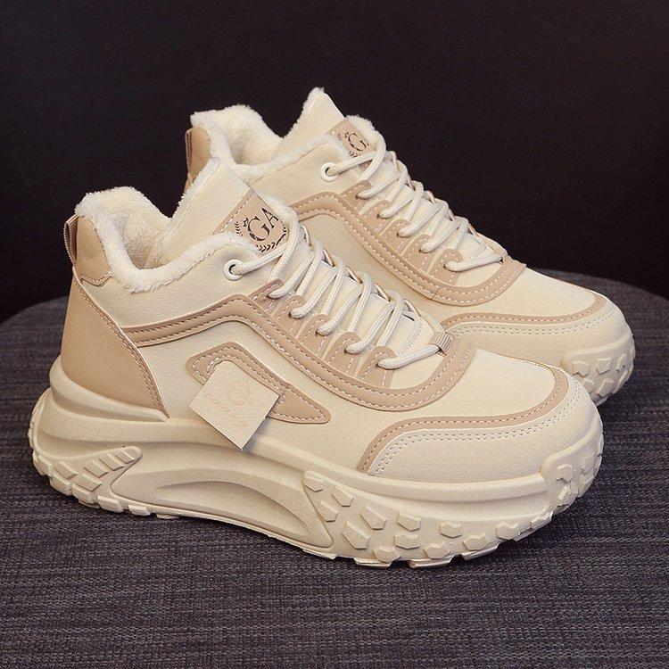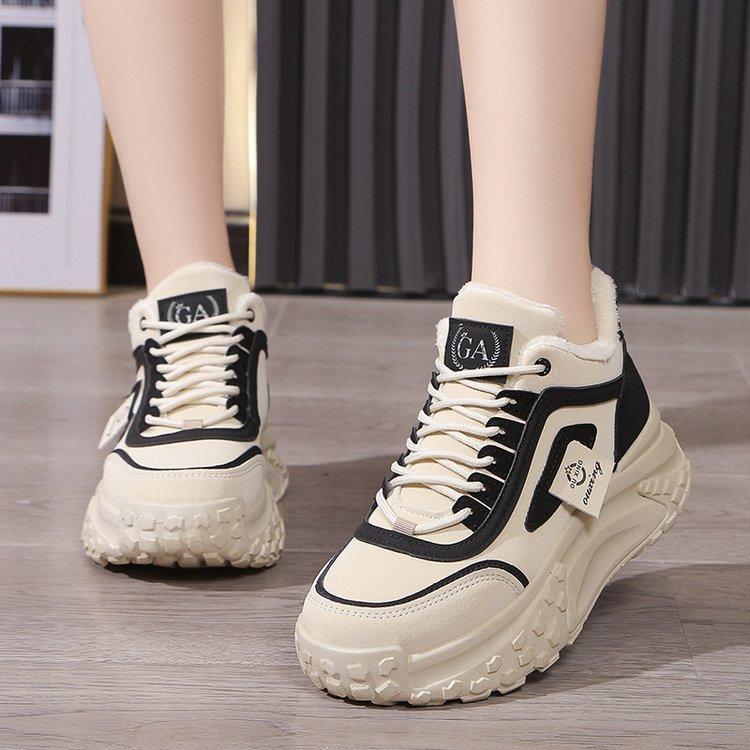 Женские туфли из флиса с утолщенным хлопком, зимние новые спортивные туфли для папы 2024 года, теплые высокие спортивные туфли на толстой подошве