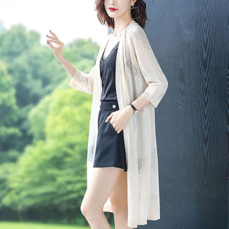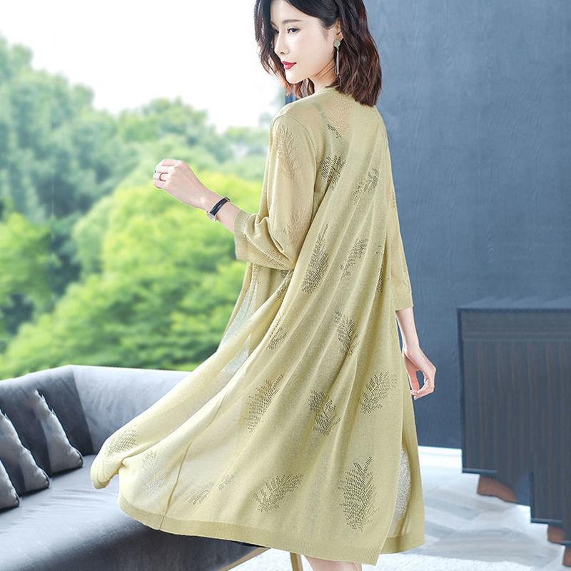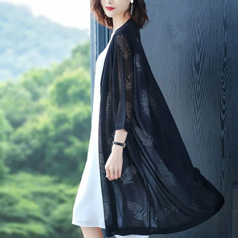 Летний тонкий ледяной шелковый вязаный свитер кардиган большого размера свободная куртка с защитой от солнца шаль куртка новый женский топ