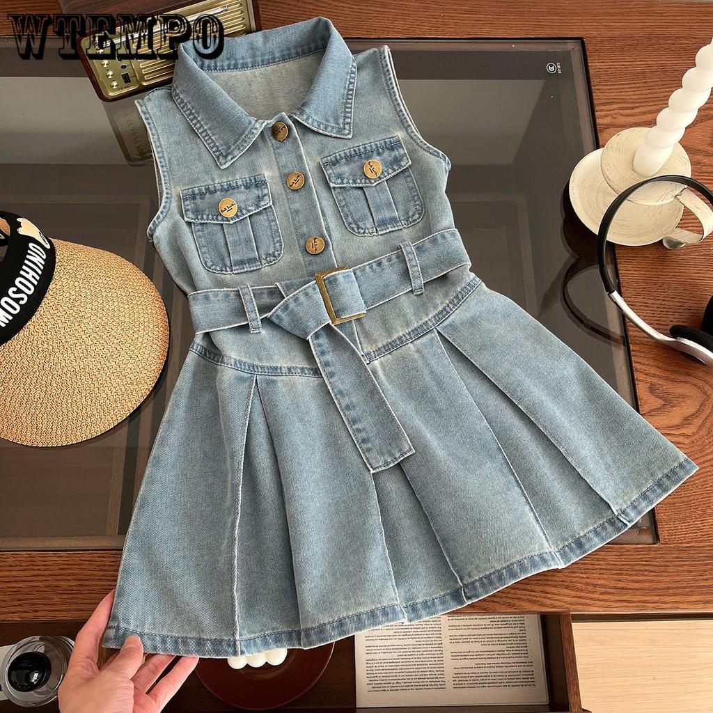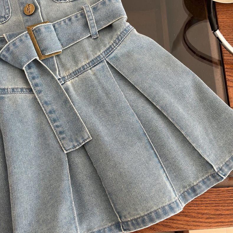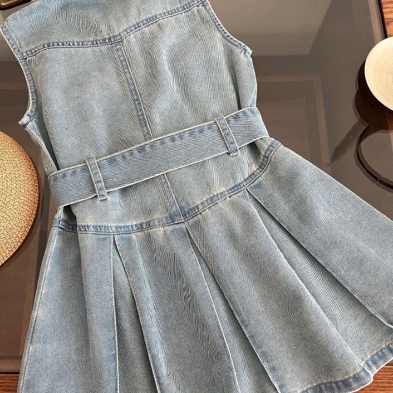 Платье для девочек, летнее детское корейское платье без рукавов, летнее платье принцессы, джинсовое платье
