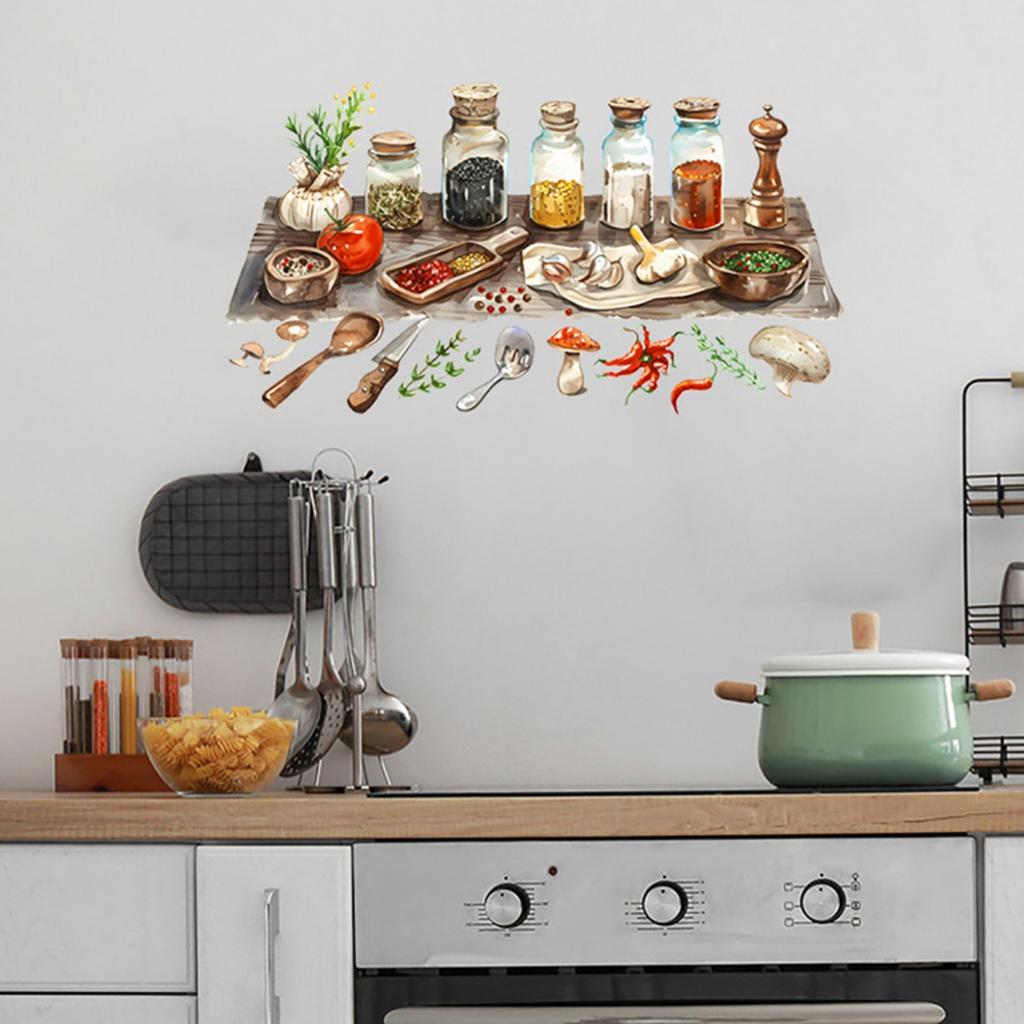 Наклейки на стену для кухонных принадлежностей, баночка для специй Sacinora, красочная кухня