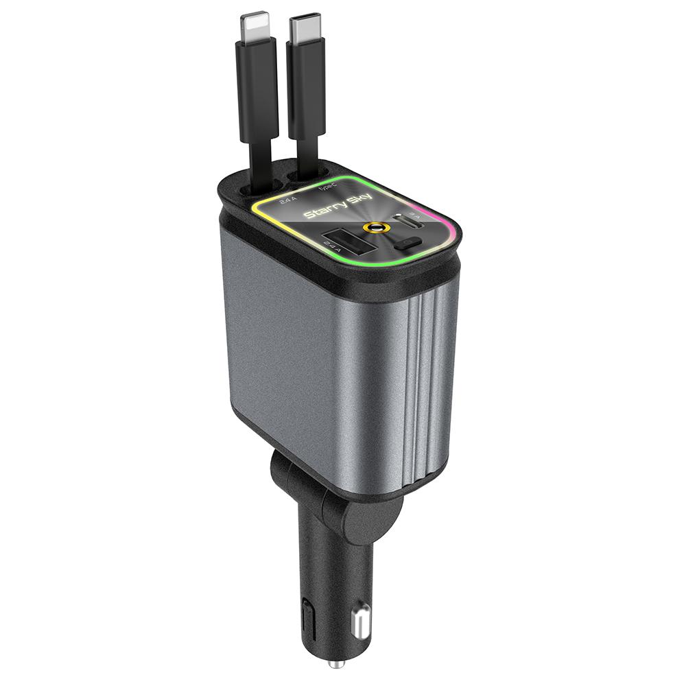 Автомобильное зарядное устройство C3 4 в 1 USB A + USB C с выдвижным кабелем Type C + iP, адаптер-прикуриватель «Звездное небо»