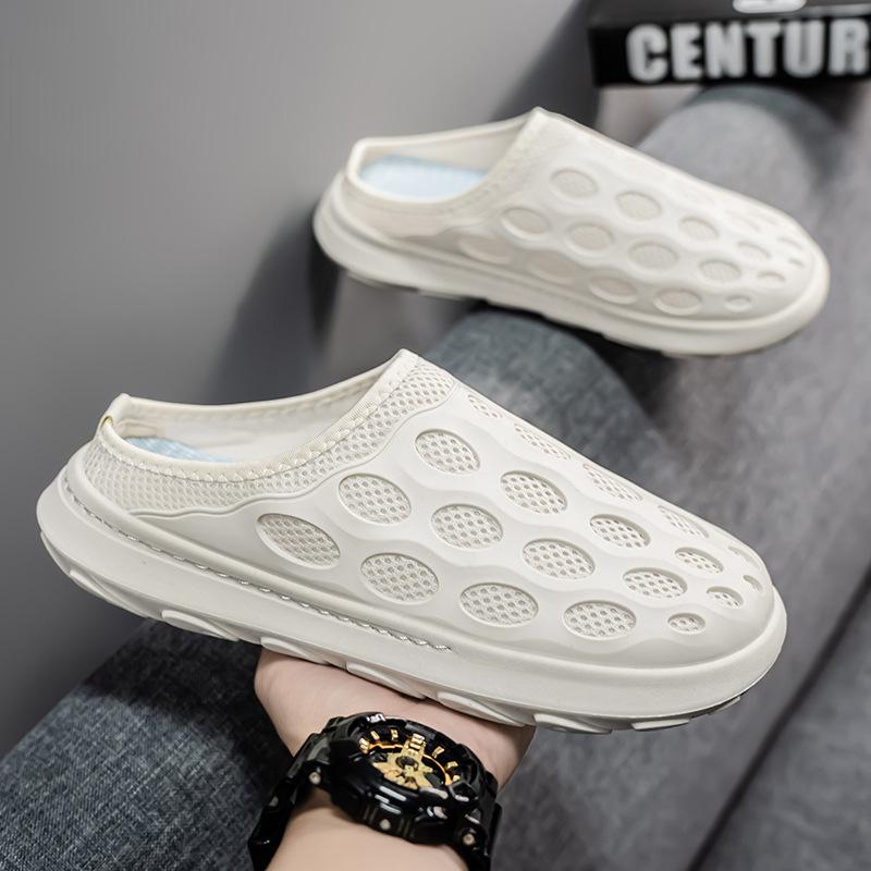 Сетчатые туфли мужские новые летние домашние туфли полуоблегающие одинарные туфли с мешковиной на голове пляжные туфли с отверстиями классные тапочки