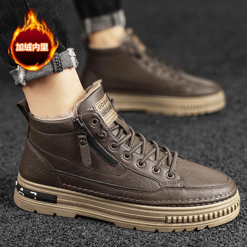 Мужская обувь зима новая средняя и высокая берцы мужские британские низкие повседневные кожаные туфли американские ретро рабочие хлопковые туфли