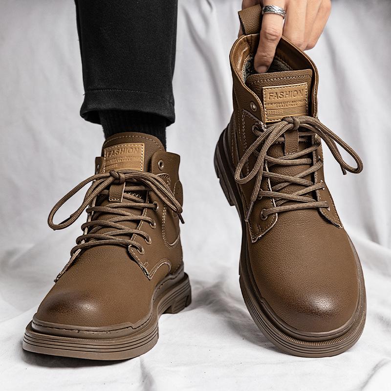 Men's shoes autumn and winter medium and high-top Martin boots new men's trend British low-top casual leather shoes retro tooling shoes