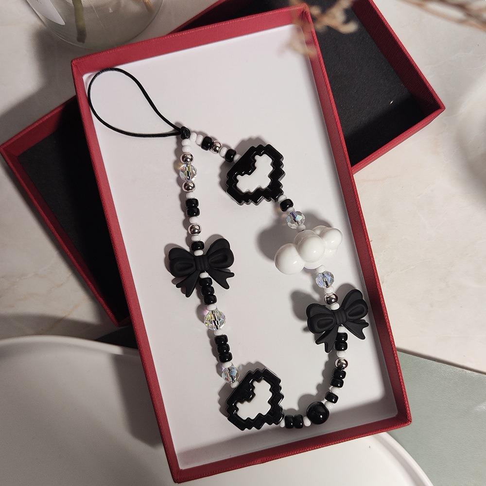 Браслет-брелок для телефона с бисером в форме сердца, длина: 16см+5см