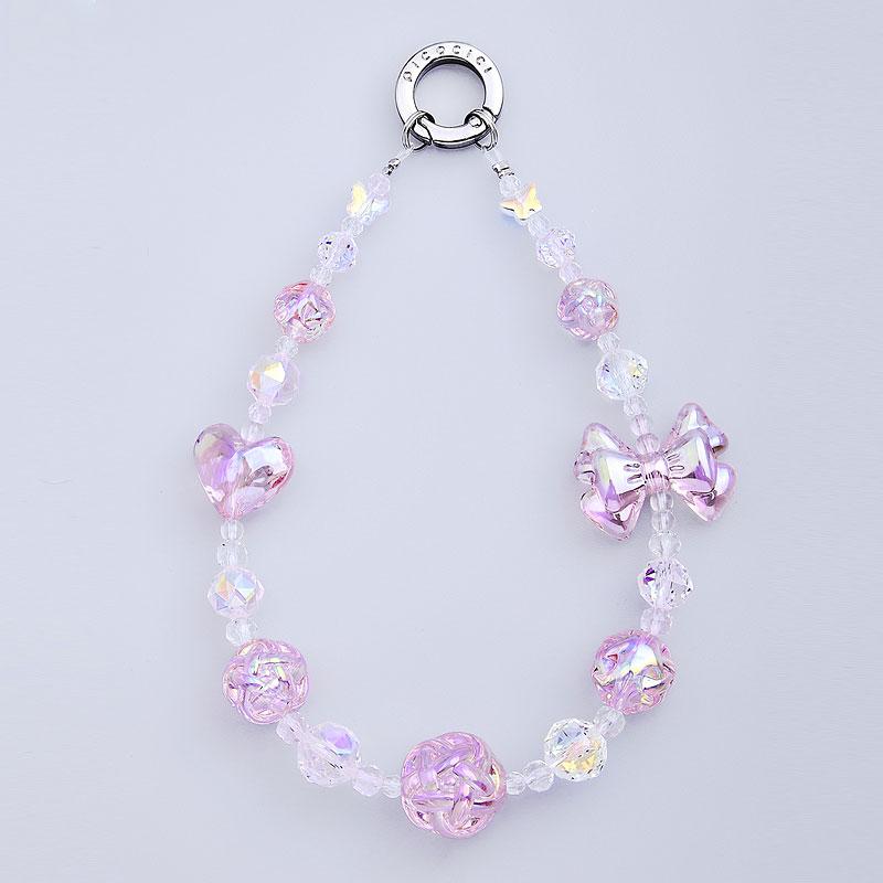 PICOCICI Anti-drop Phone Strap Love Heart Bowknot Decor Crystal Clear Beads Wrist Band