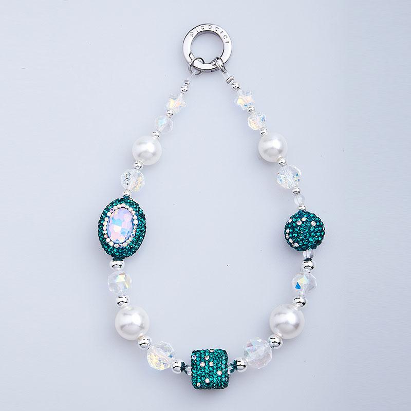 PICOCICI Mobile Phone Charm Strap Rhinestones Pearls Beads Phone Wrist Strap Lanyard