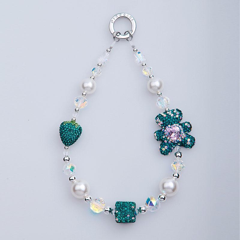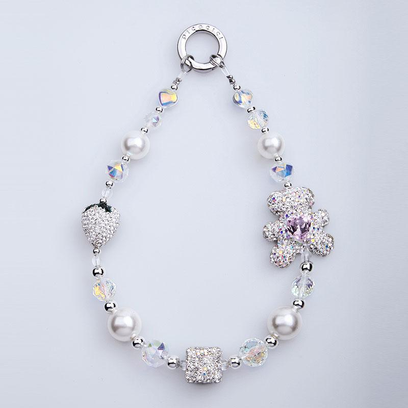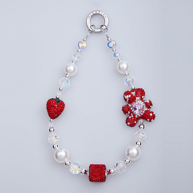 PICOCICI Phone Bracelet Strap Rhinestone Bear Strawberry Pearls Hand Wrist Lanyard